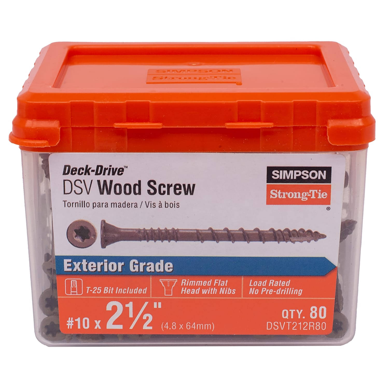 Simpson DSVT212 #10 x 2-1/2" Deck-Drive DSV Wood Screw, Tan, T25 80 ct