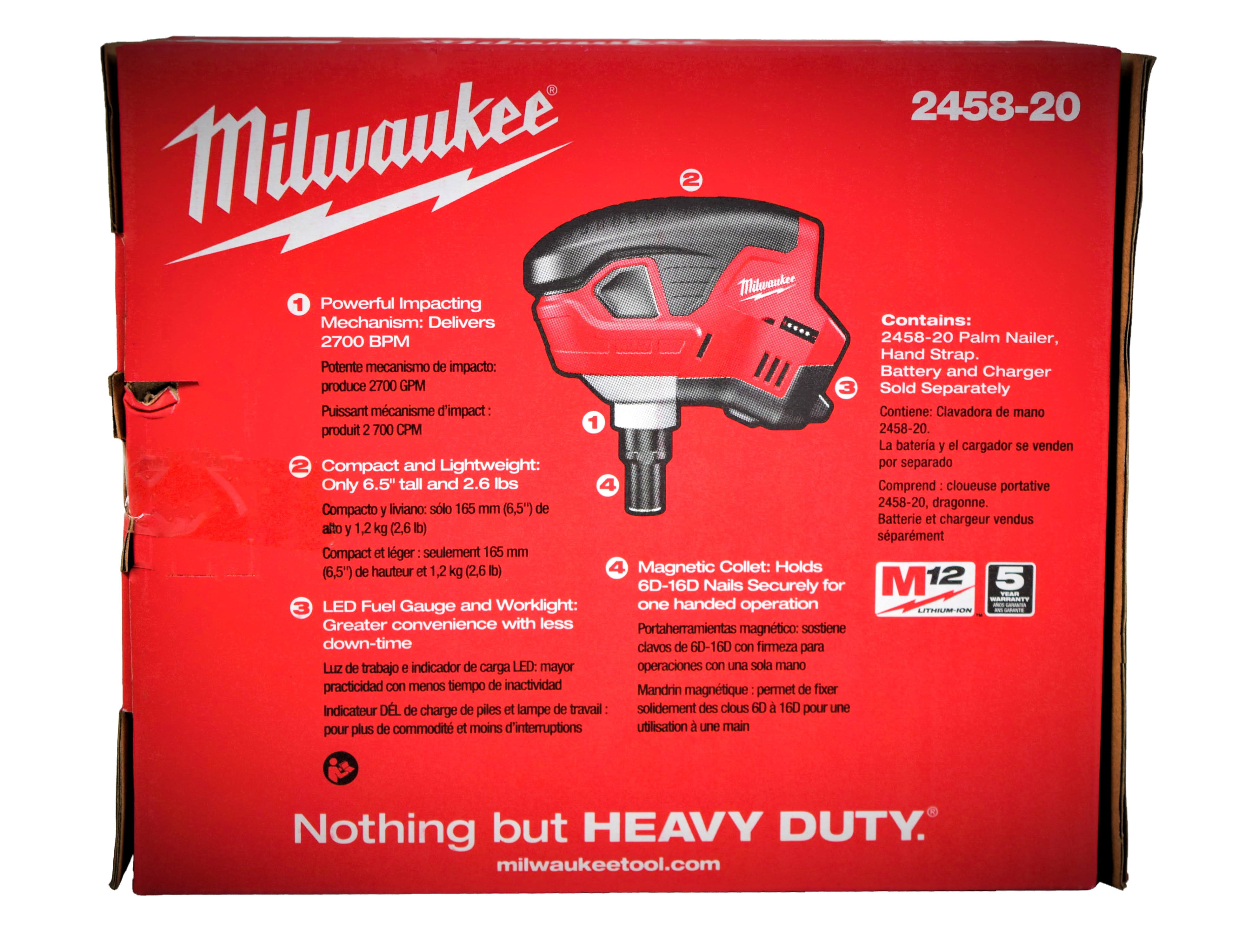 Milwaukee 2458-20 M12 Cordless Palm Nailer (Tool Only)