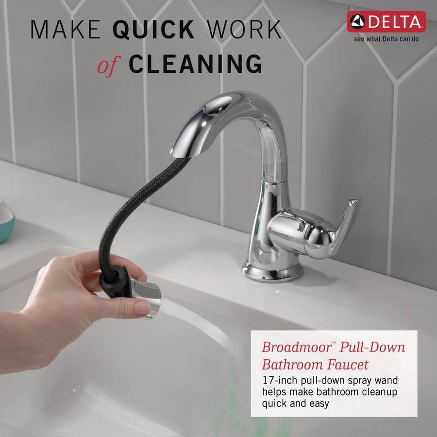 Delta Broadmoor Single Hole Single-Handle Bathroom Faucet with Pull-Down Sprayer in Chrome Grey
