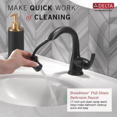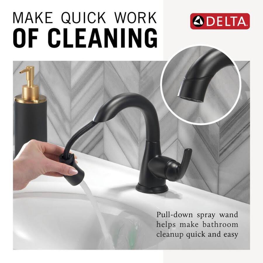 Delta Broadmoor Single Hole Single-Handle Bathroom Faucet with Pull-Down Sprayer in Matte Black