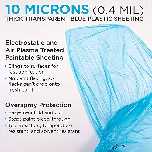 Dura-Gold 20' x 250' Roll of Pure Blue Premium Overspray Paintable Plastic Sheeting- 10 Micron, 0.4 mil, Protective Masking Film Cover- Auto Car