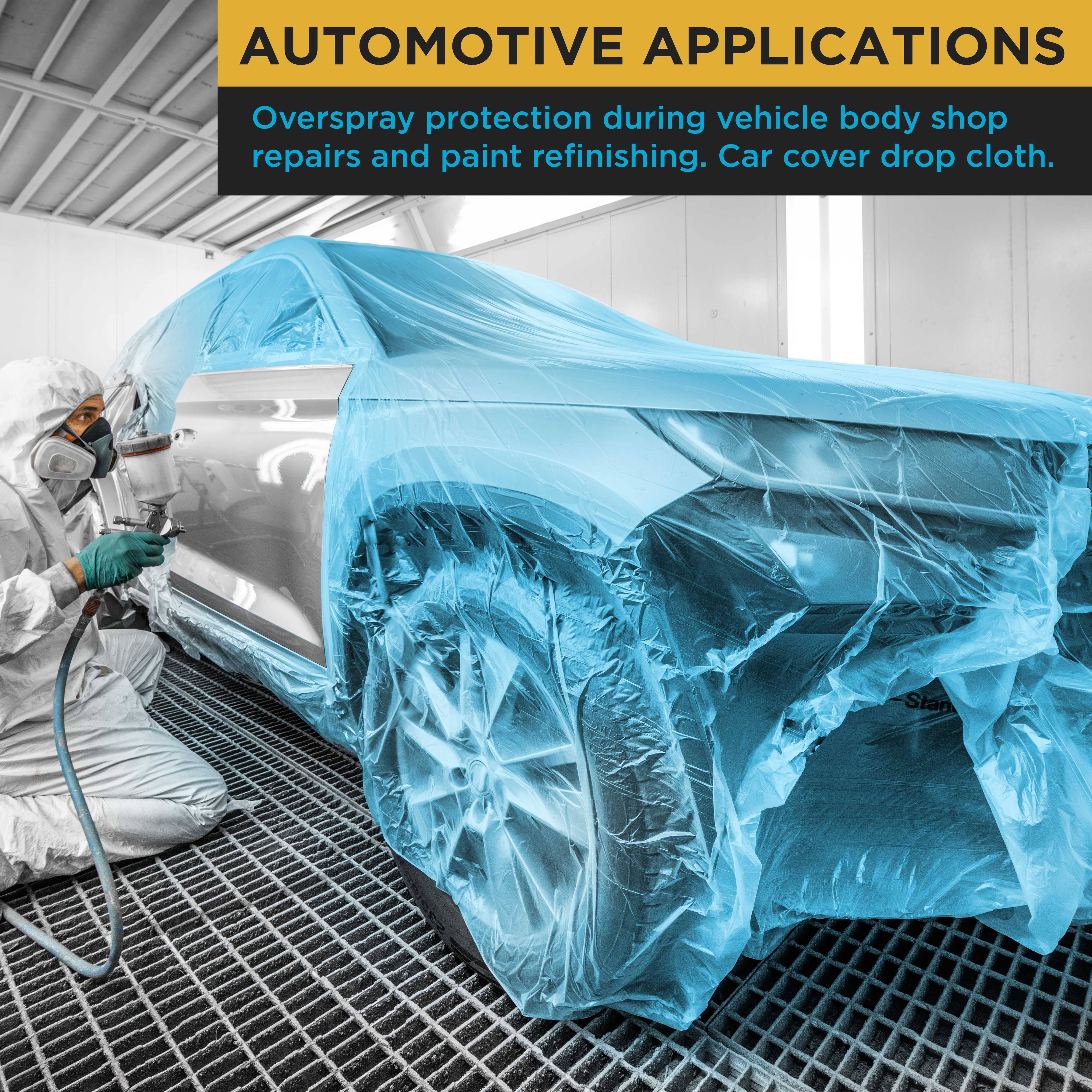 Dura-Gold 12' x 400' Roll of Pure Blue Premium Overspray Paintable Plastic Sheeting- 10 Micron, 0.4 mil, Protective Masking Film Cover- Auto Car