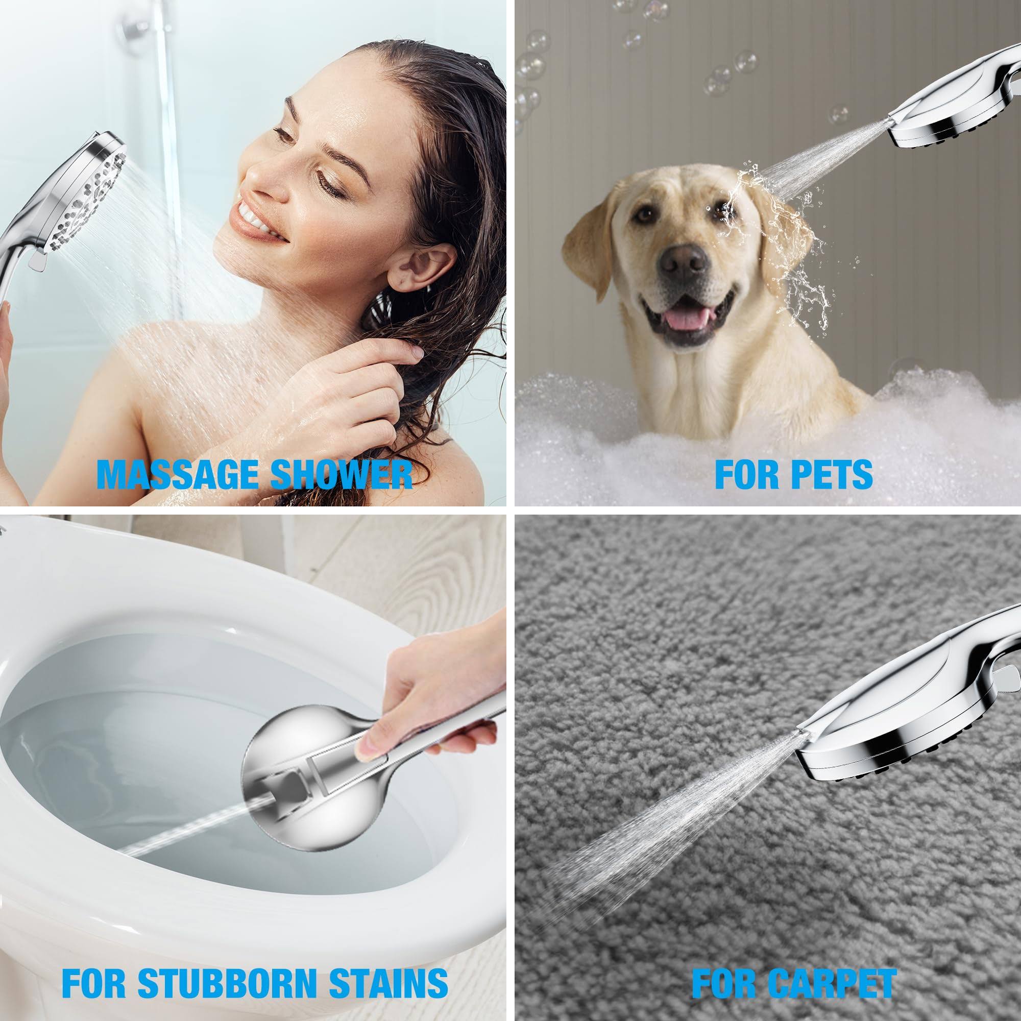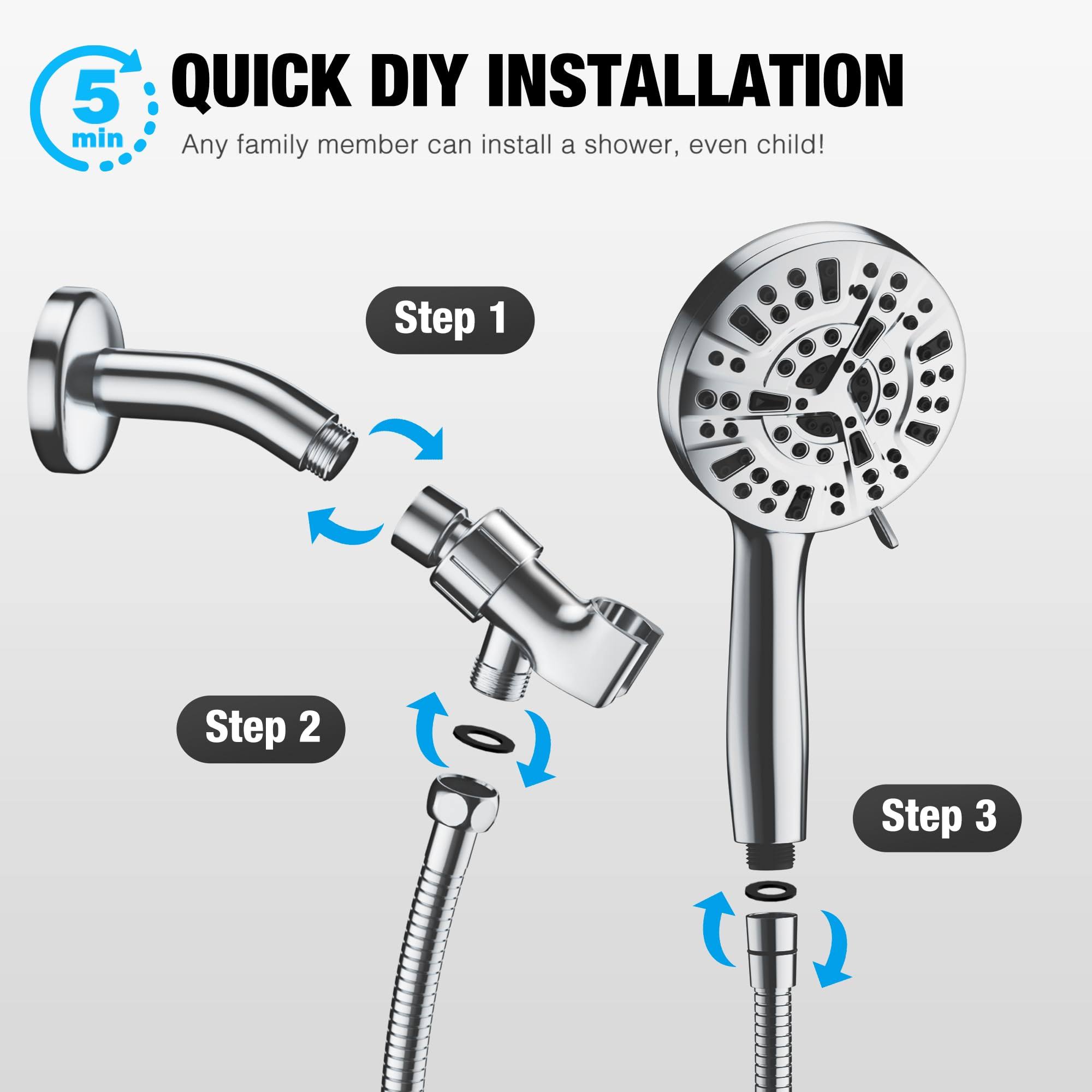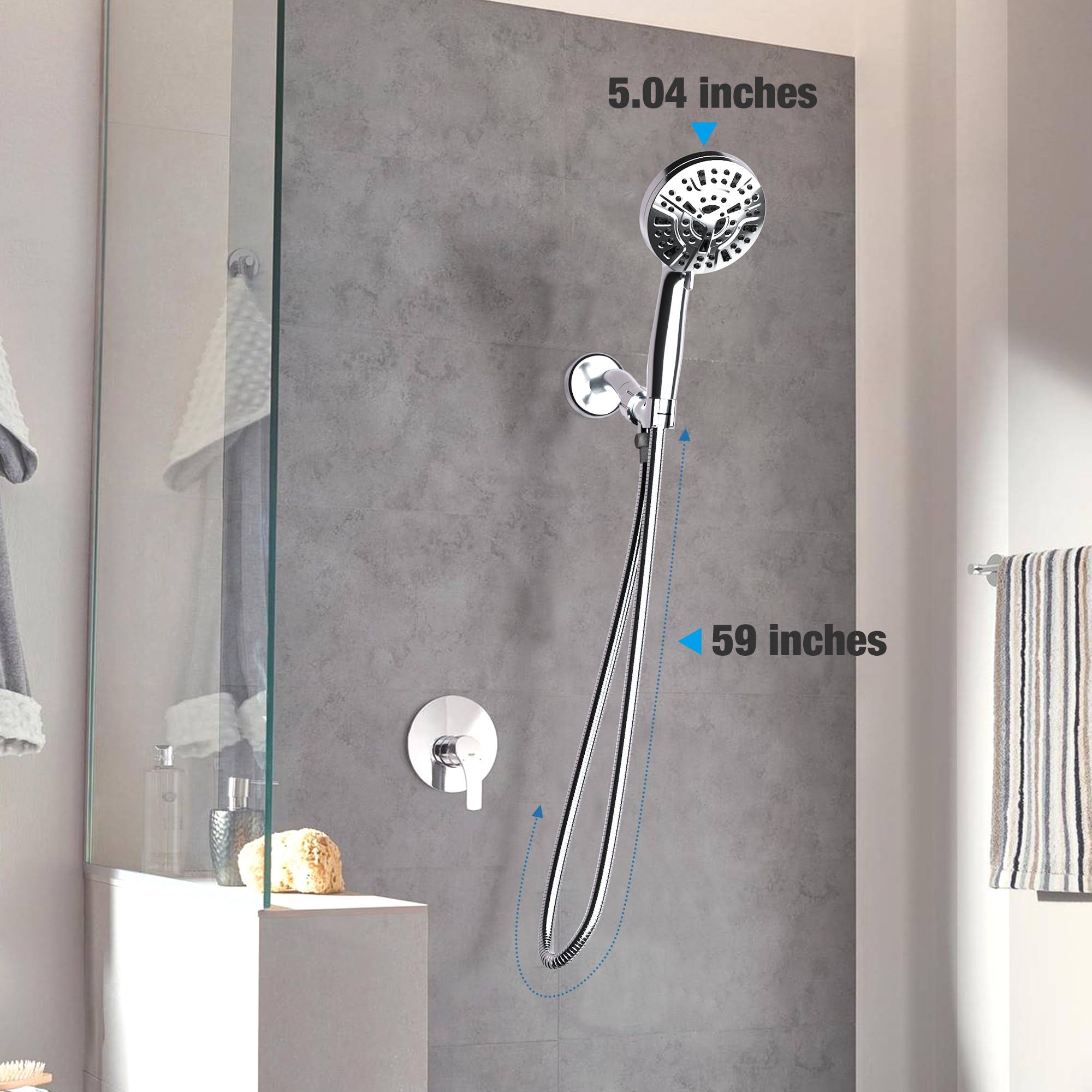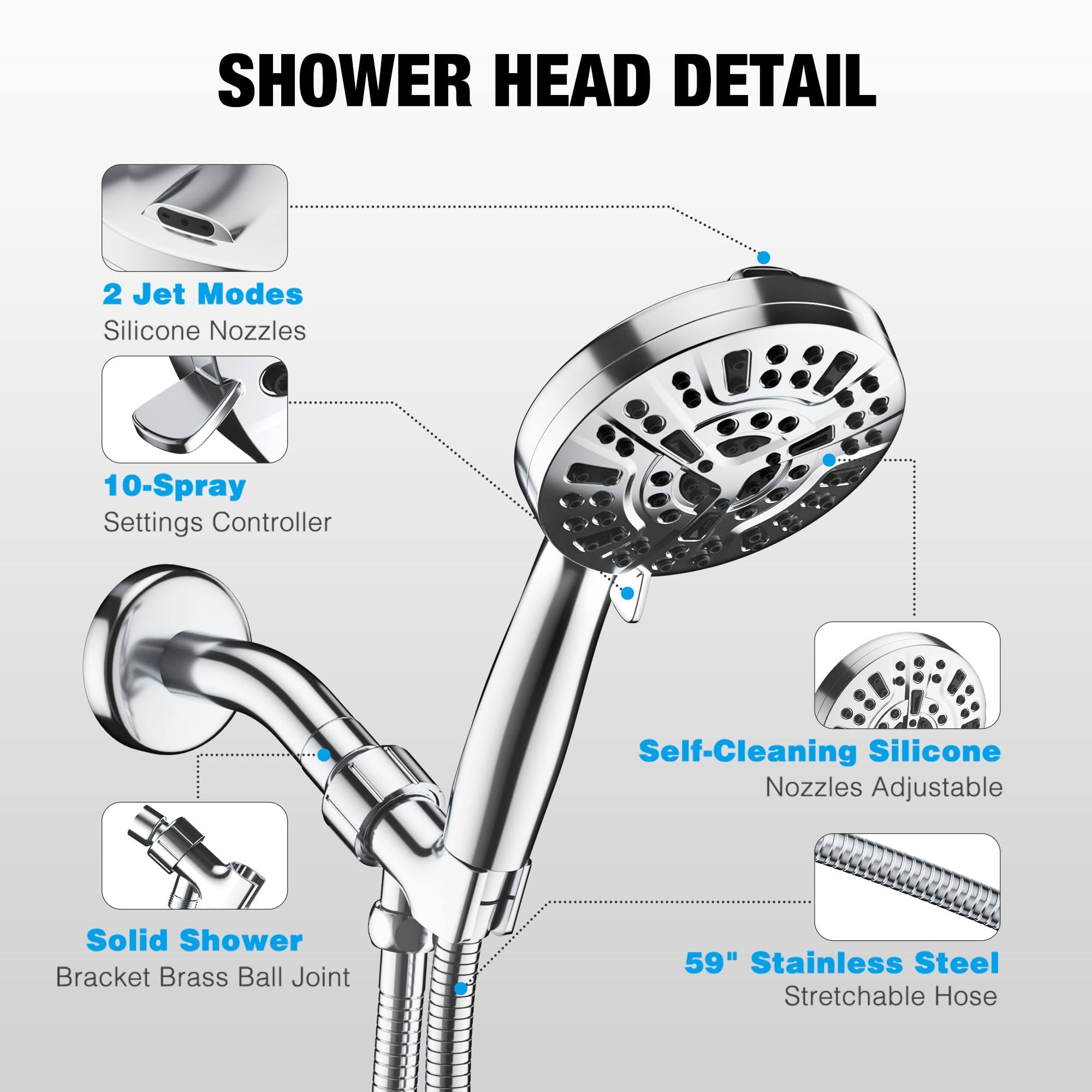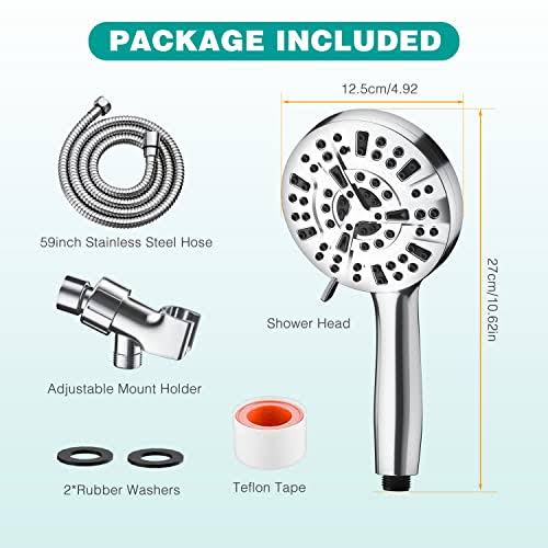 8 Massage Setting & 2 Jet Modes High Pressure Shower Heads, 5.04" Large Size Handheld Shower Head 59" Stainless Steel Shower Head with Hose 360��