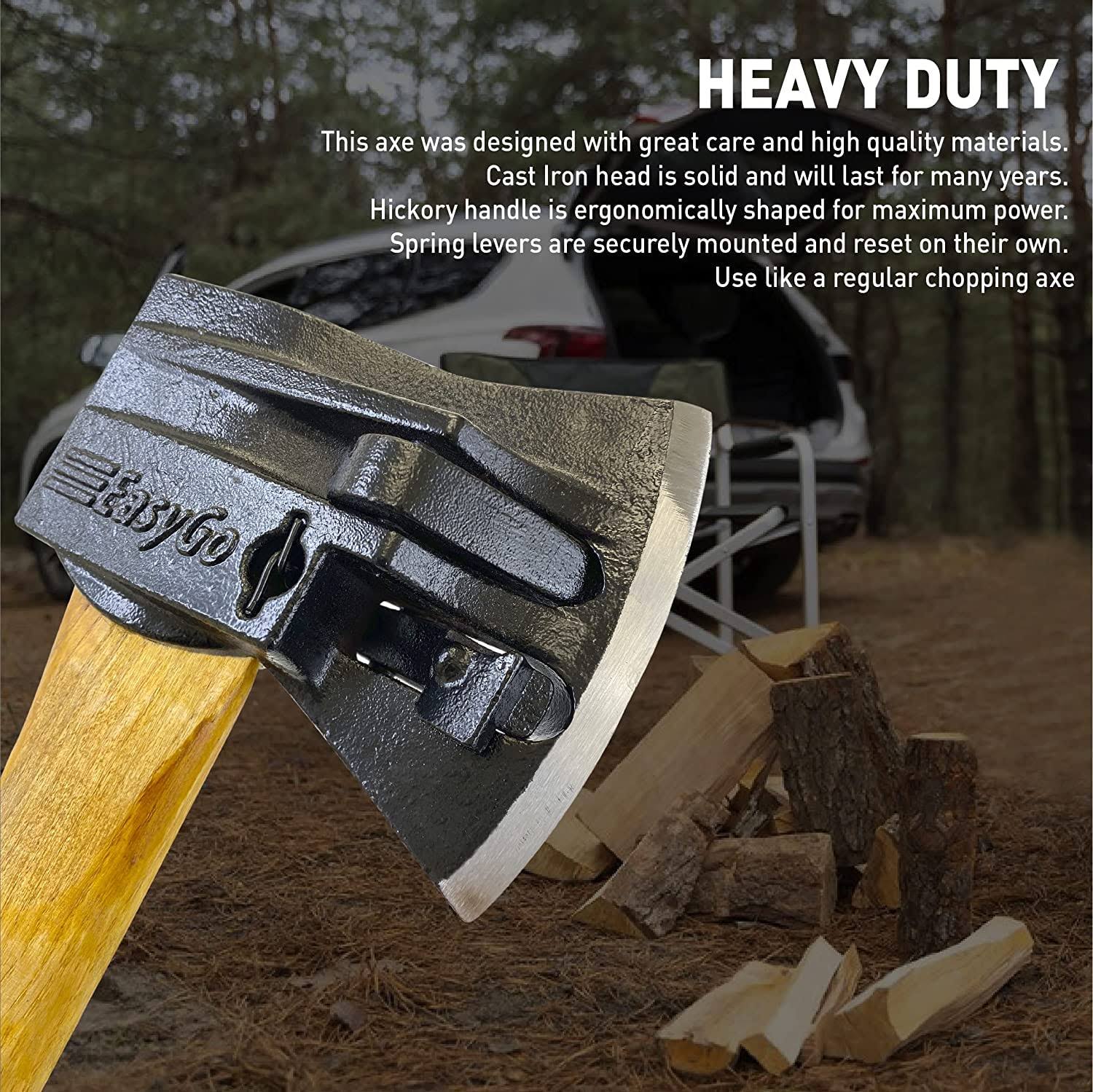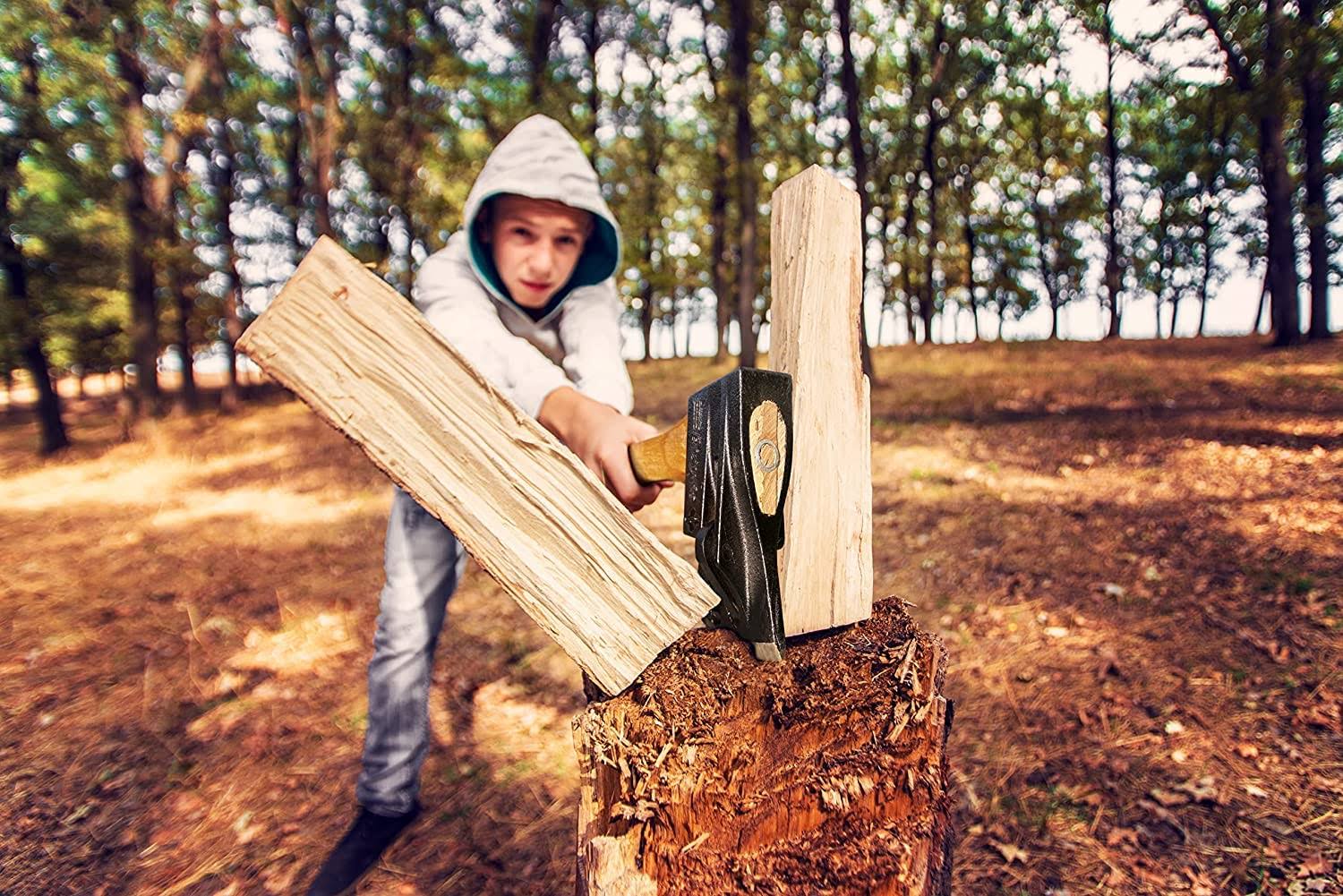EasyGO Product Chopper Wooden Axe- #1 Splitting Maul Powerful Log Action Spring Activated Levers Separate Wood 6.25#Cast Iron Head 32'' Hickory