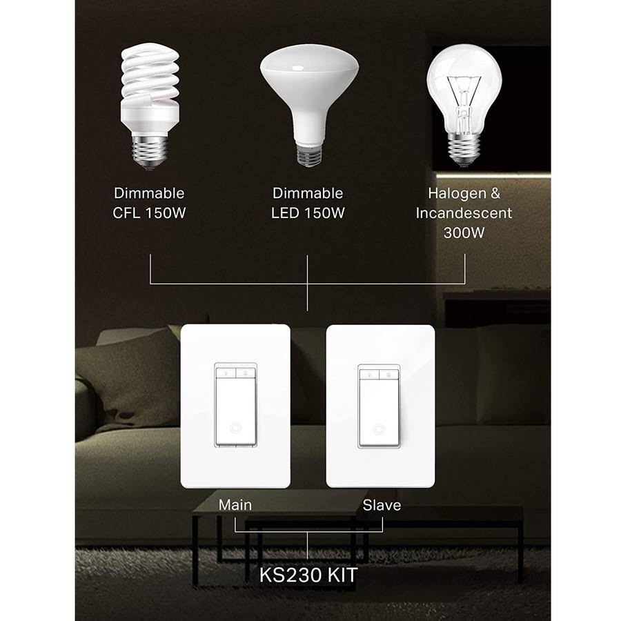 Kasa Smart KS230 Kit V2- WiFi Light Switch, 3-Way Dimmer Kit