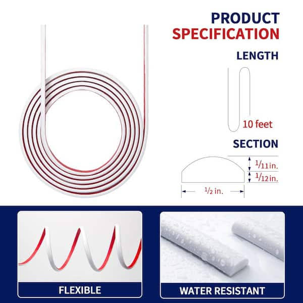 Art3d Self-Adhesive Liner for Corner Decor White 120 in. x 0.5 in. Glossy PVC Peel and Stick Tile Trim for Backsplash Edge
