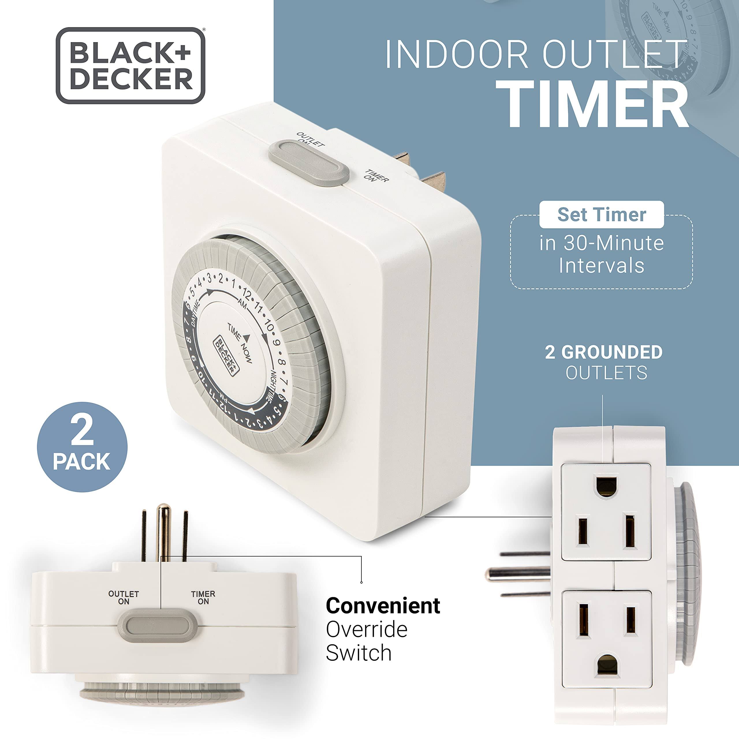 Black + Decker Indoor 2 Grounded Outlets Timer (2 Pack), BDXPA0021