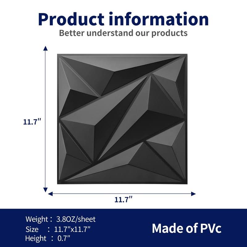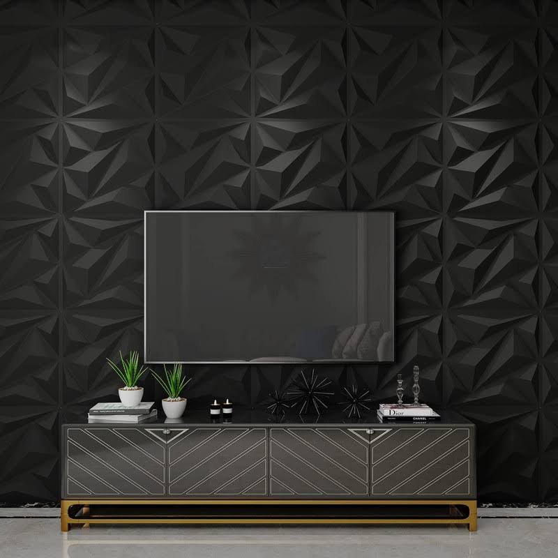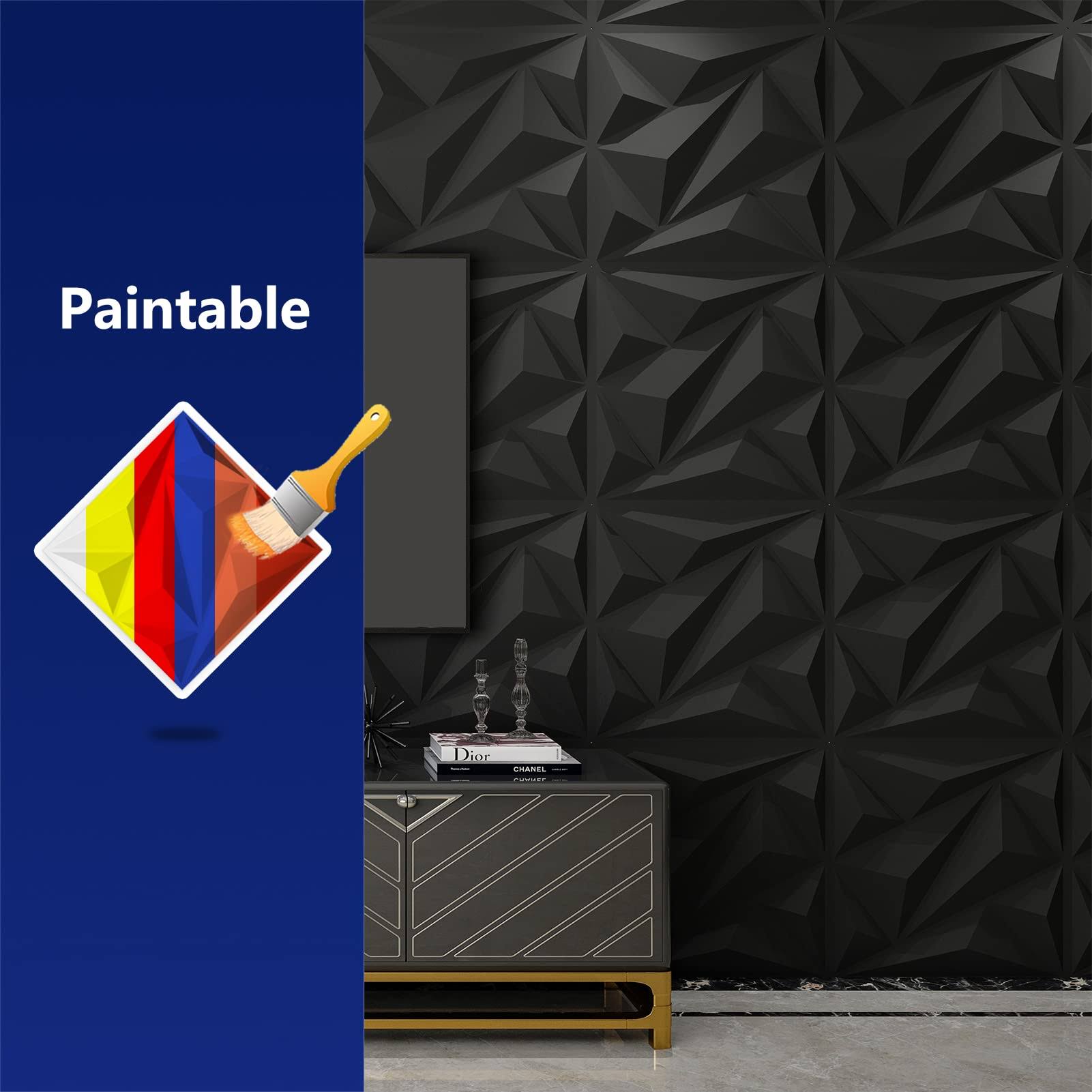 Art3dwallpanels 33 Pack 3D Wall Panel Diamond for Interior Wall dcor PVC Flower Textured Wall Panels for Living Room Lobby Bedroom Hotel Office Black
