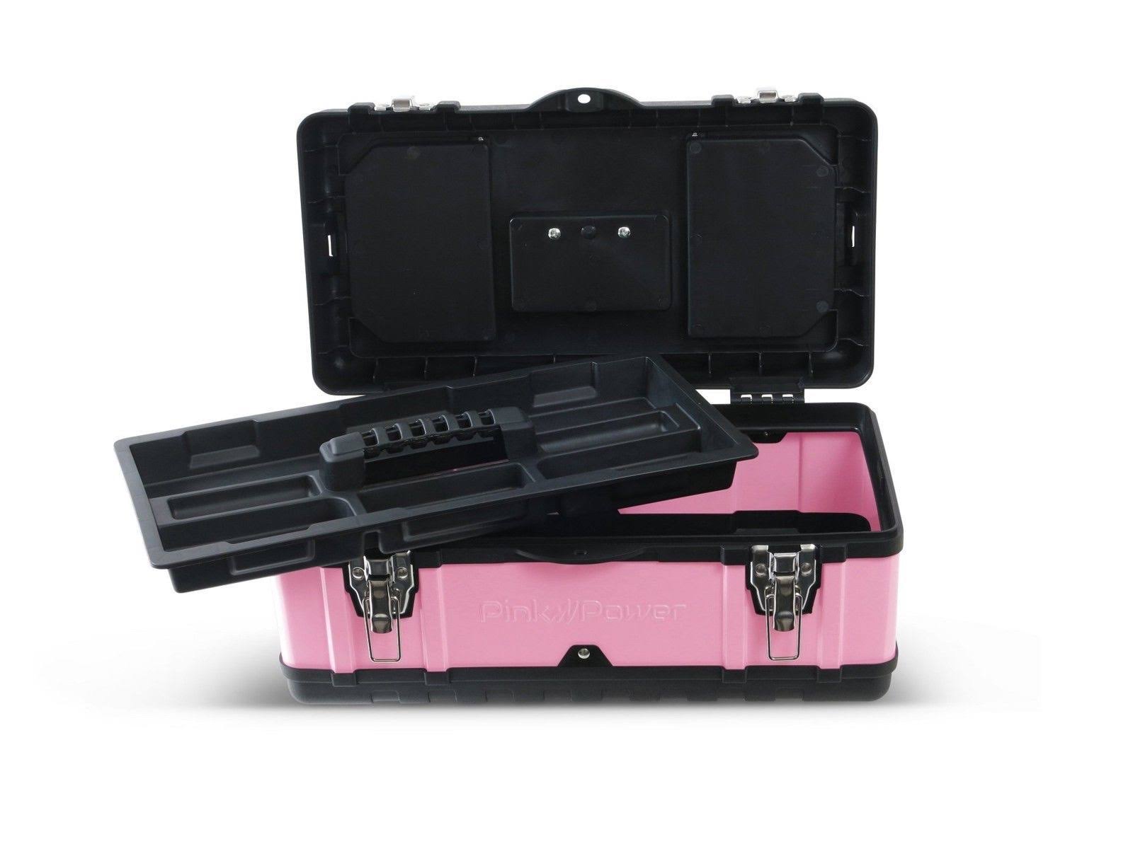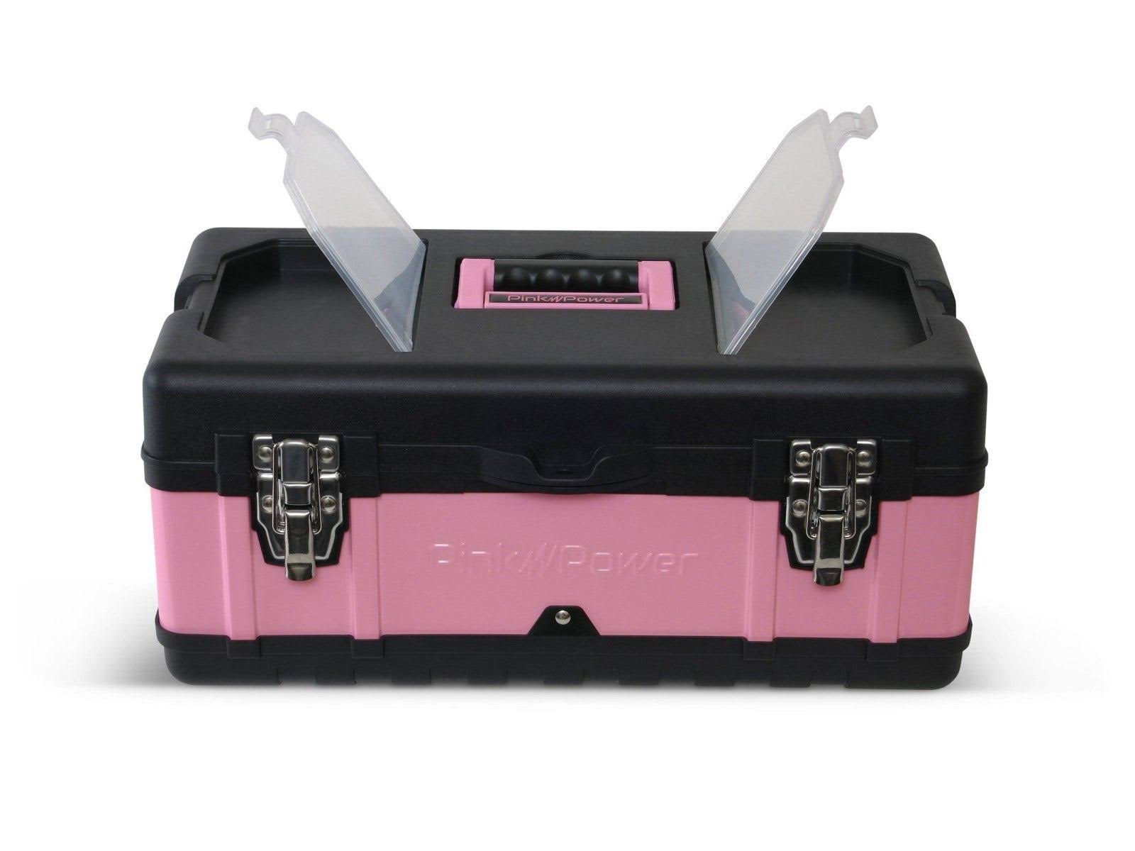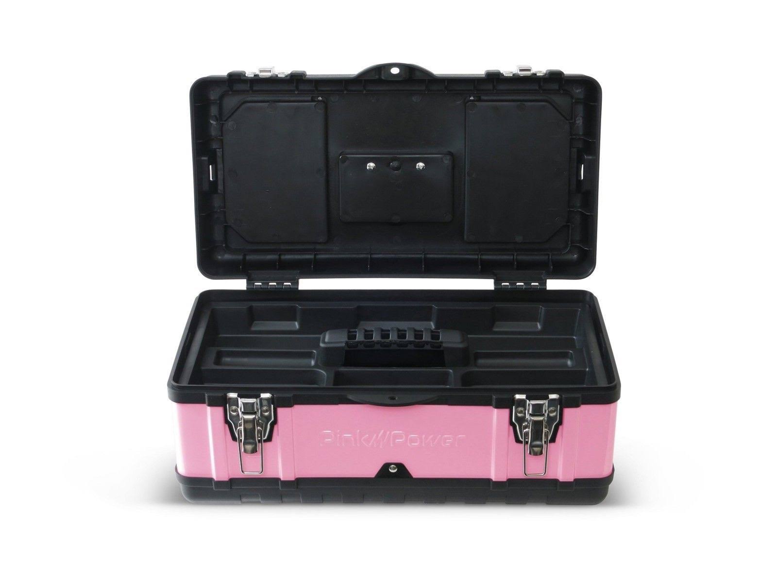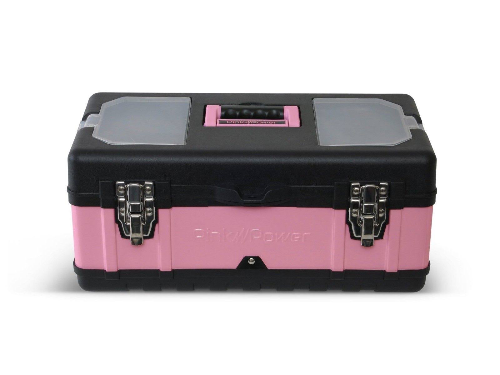 Pink Power 18 Portable Aluminum Tool Box for Tool or Craft Storage- L