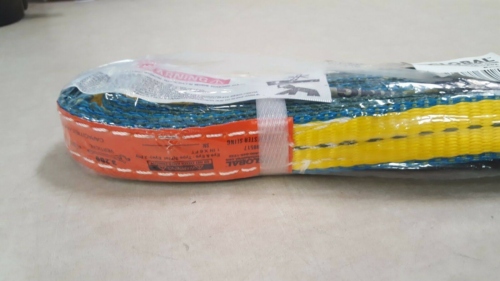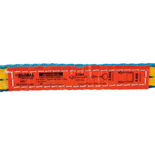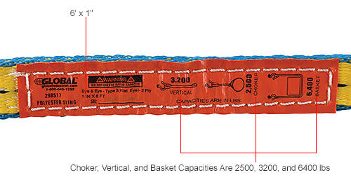 Global Industrial Sling, Eye & Eye, 6 ft L x 1 in W, 3200/2500/6400 lbs Cap