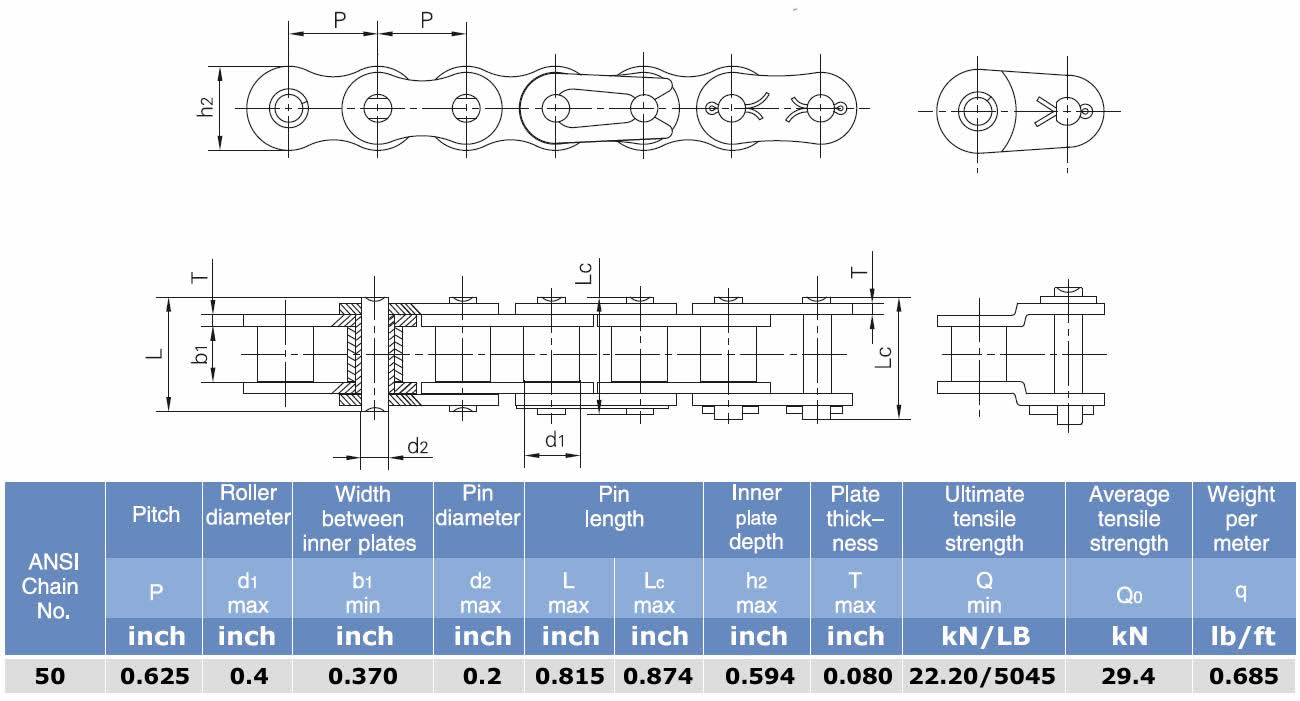 #50 Roller Chain x 10 Feet + 2 Free Links �C PGN