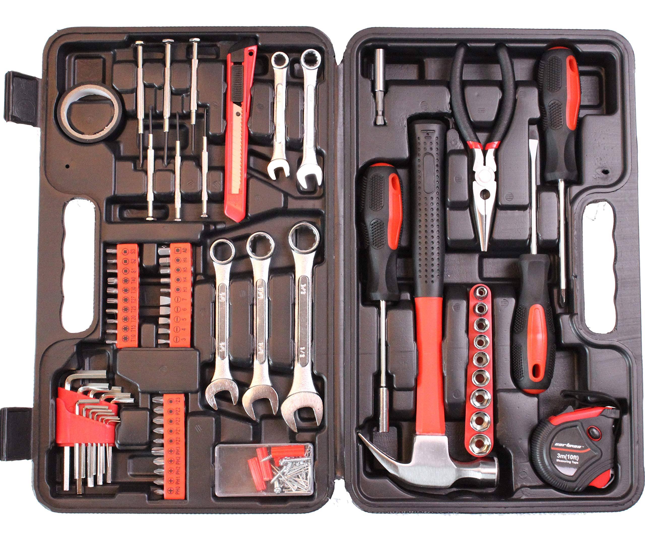 Cartman 148-Piece Tool Set- General Household Hand Tool Kit with Plastic Toolbox Case