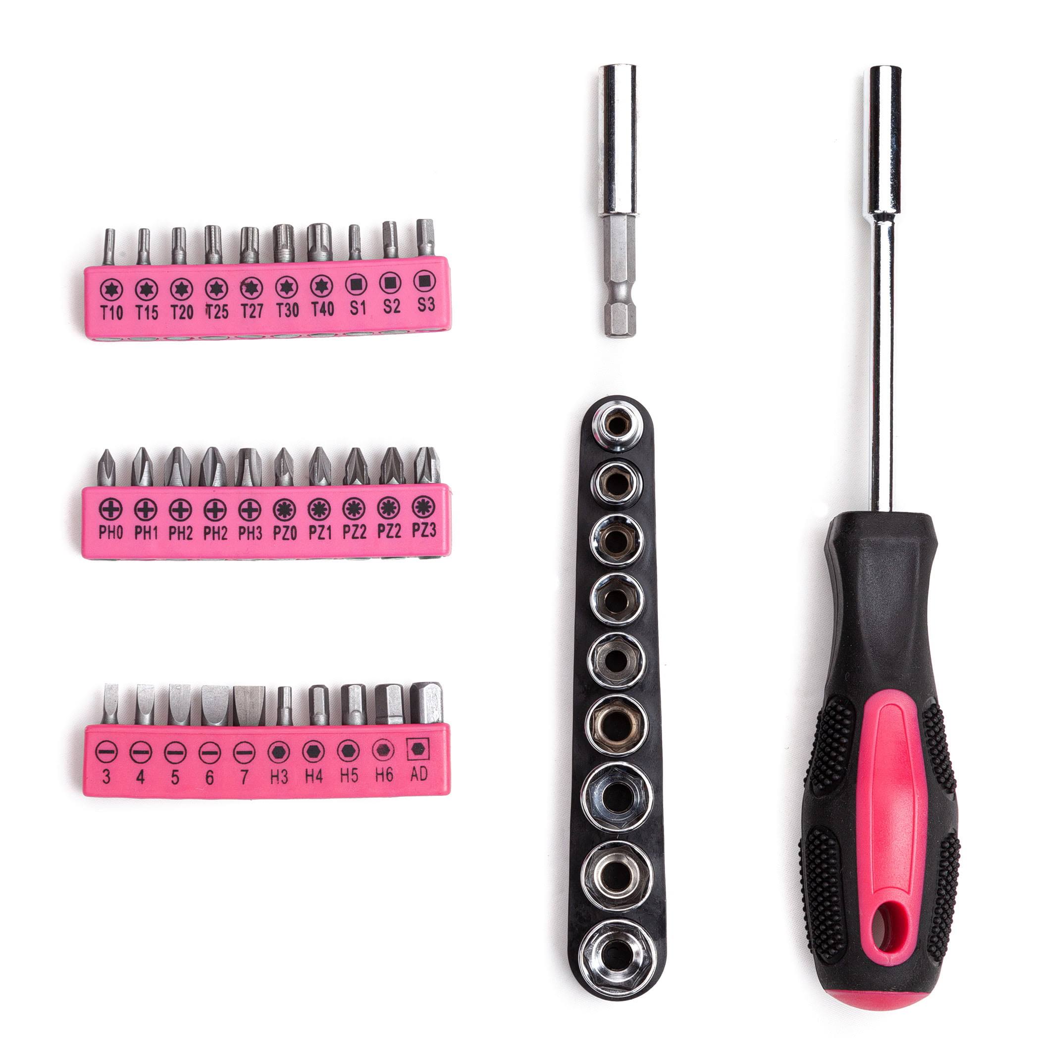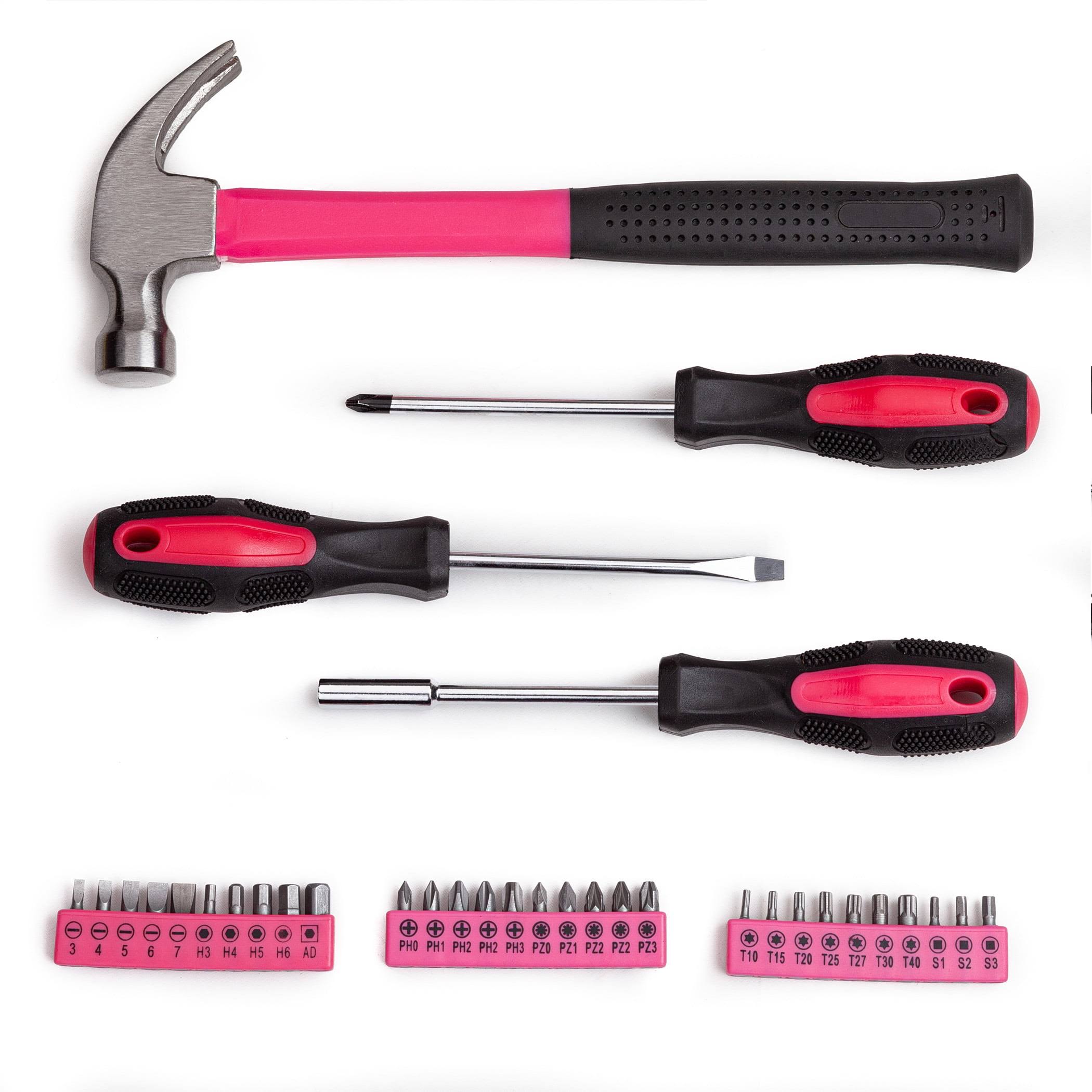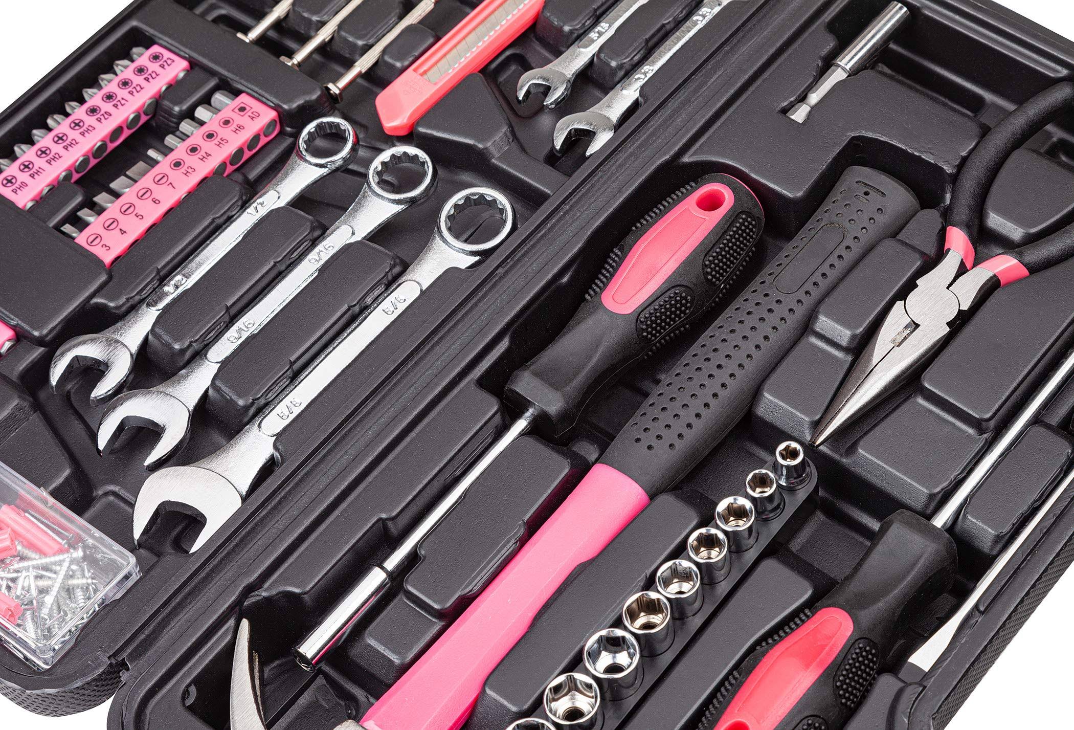 Cartman 148Piece Tool Set General Household Hand Tool Kit with Plastic Toolbox Storage Case Pink