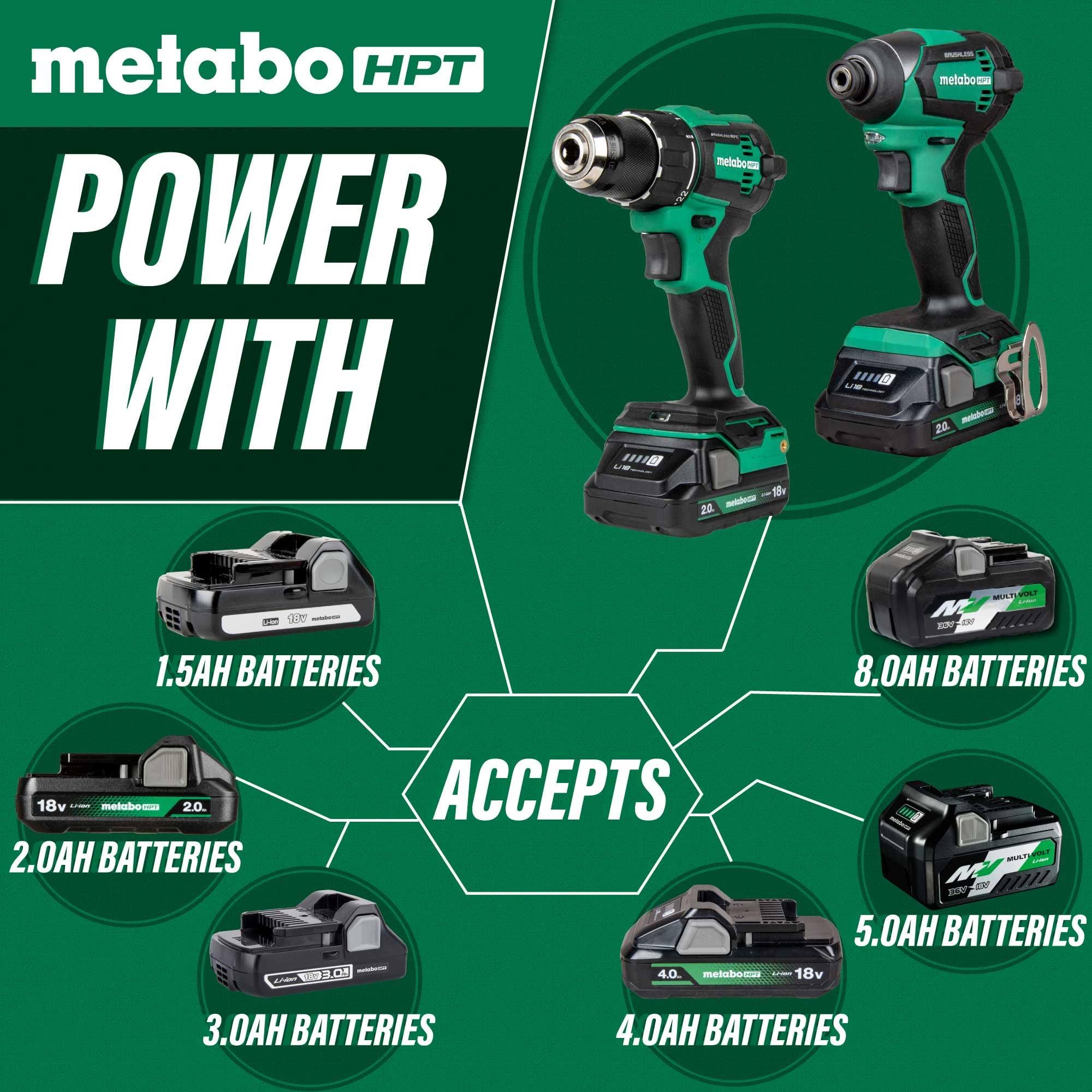 Metabo HPT KC18DEXQBM 18V Multivolt Brushless Lithium-Ion Cordless Drill Driver and Impact Driver Combo Kit with 2 Batteries (2 Ah)