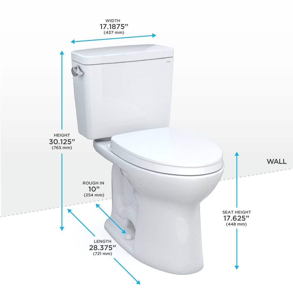 Toto MS776124CSFG.10#01 Drake Two-Piece Elongated 1.6 GPF Universal Height Tornado Flush Toilet with 10 inch Rough-In , Cotton White