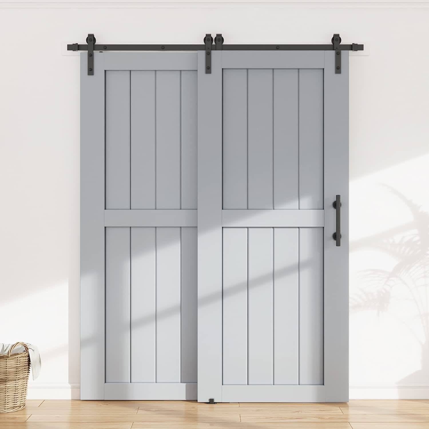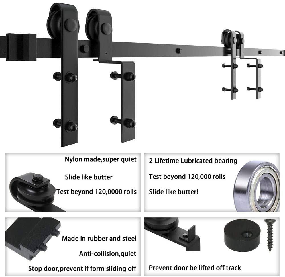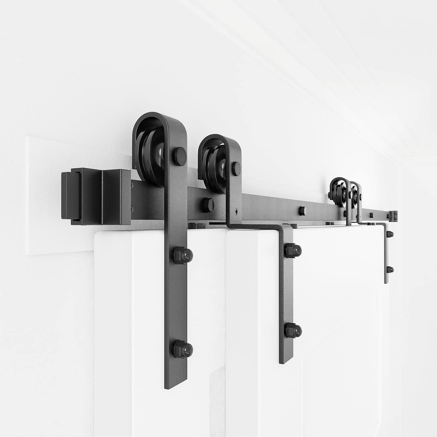 Winsoon 4-18ft Single Track Bypass Sliding Barn Door Hardware Kit for Double Doors J Style Rollers- 7.5ft