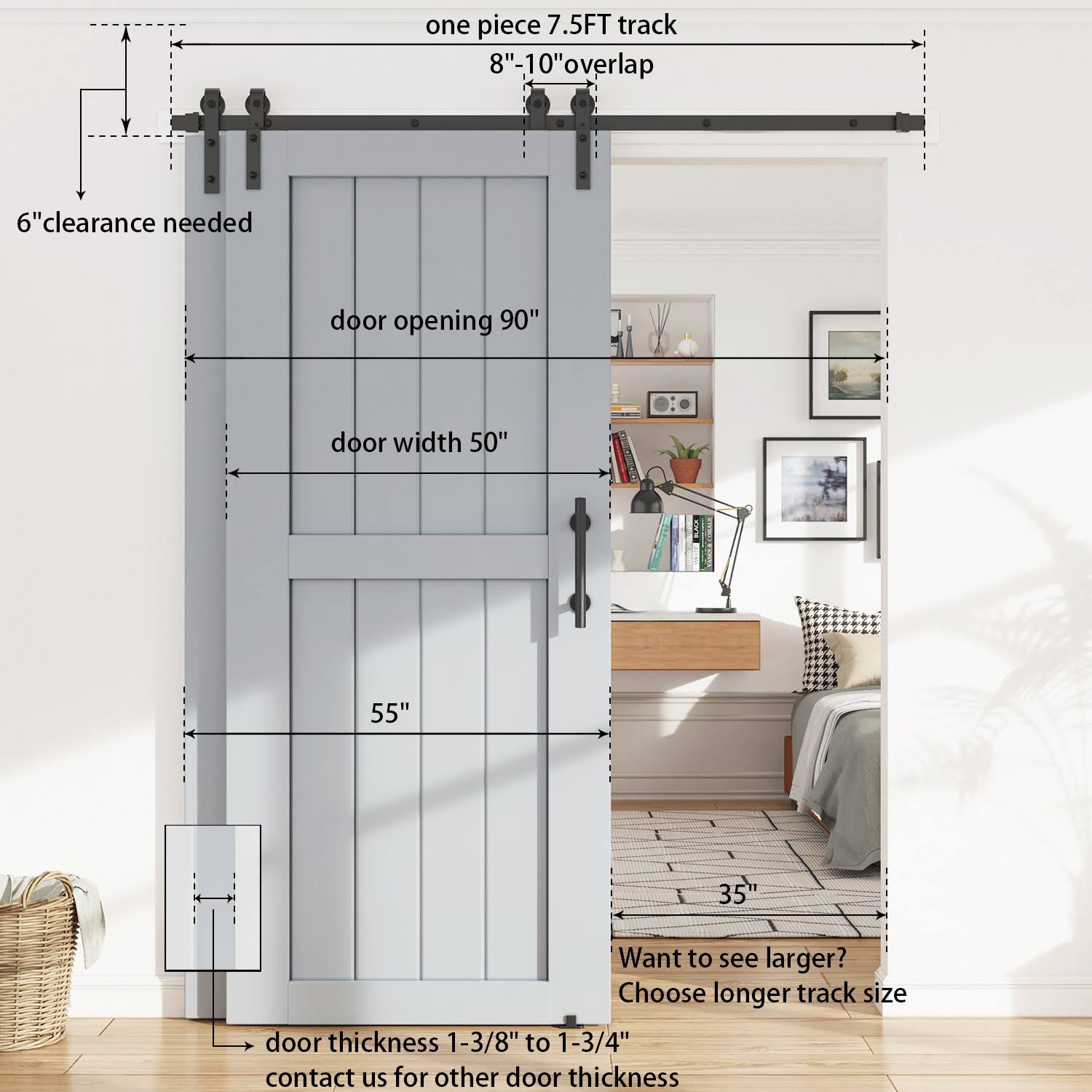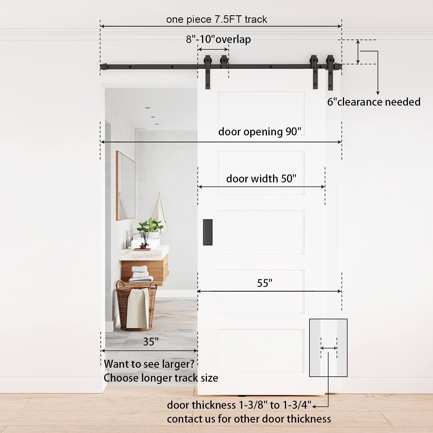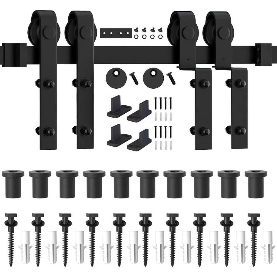 Winsoon 4-18ft Single Track Bypass Sliding Barn Door Hardware Kit for Double Doors J Style Rollers- 7.5ft