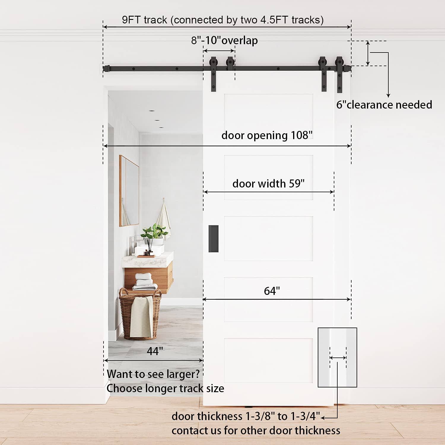 Winsoon 4-18ft Single Track Bypass Sliding Barn Door Hardware Kit for Double Doors J Style Rollers- 9ft
