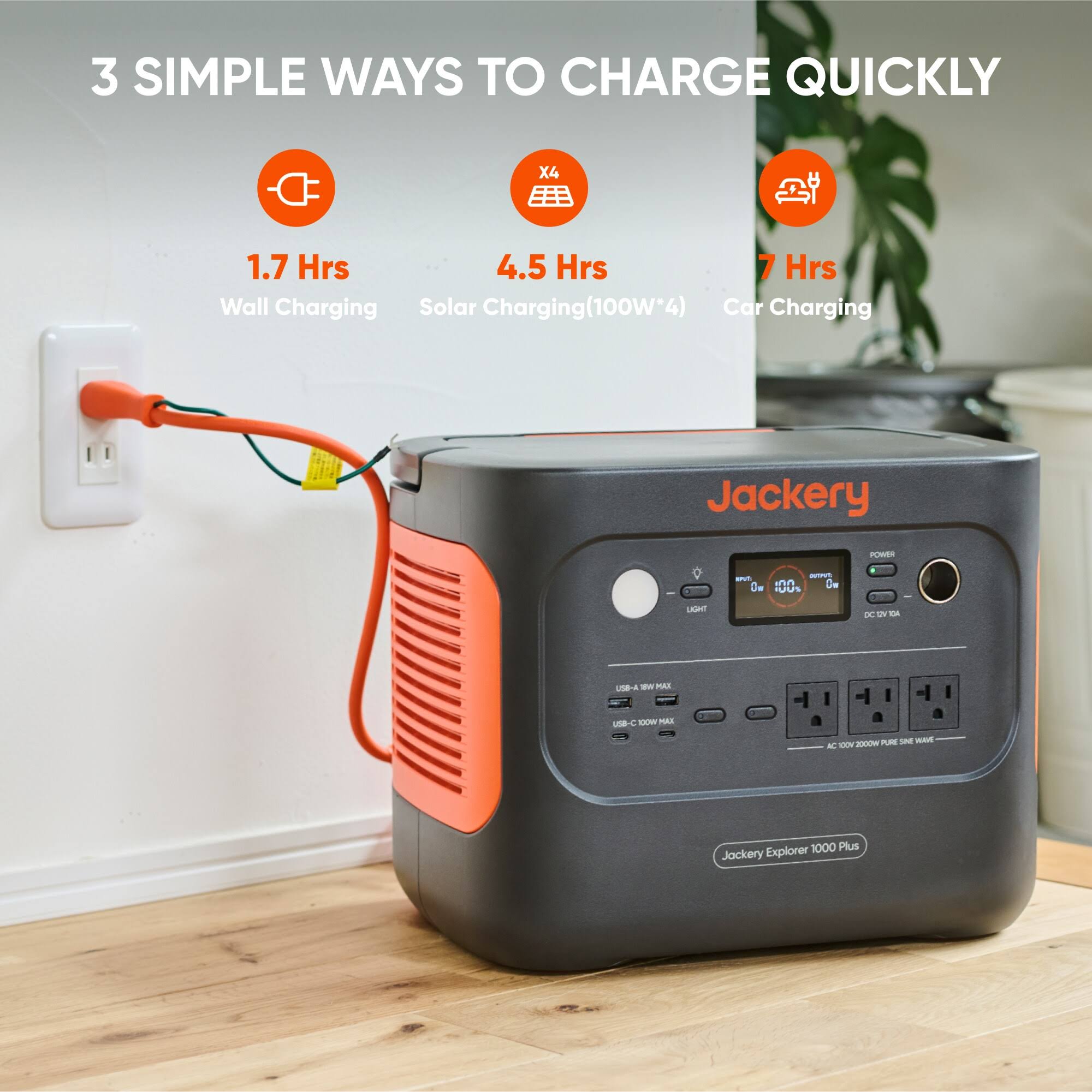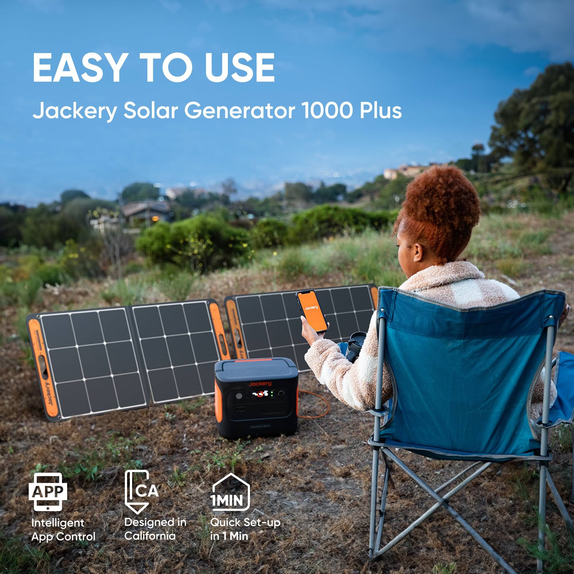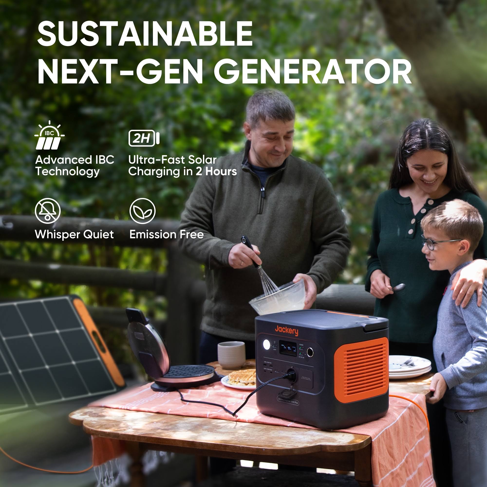 Jackery Explorer 1000 Plus Solar Generator + 2*100W Solar Panel for Outdoor Off-Grid Activities, 2000W output(4000W Surge) to Power Up to 8 Devices at