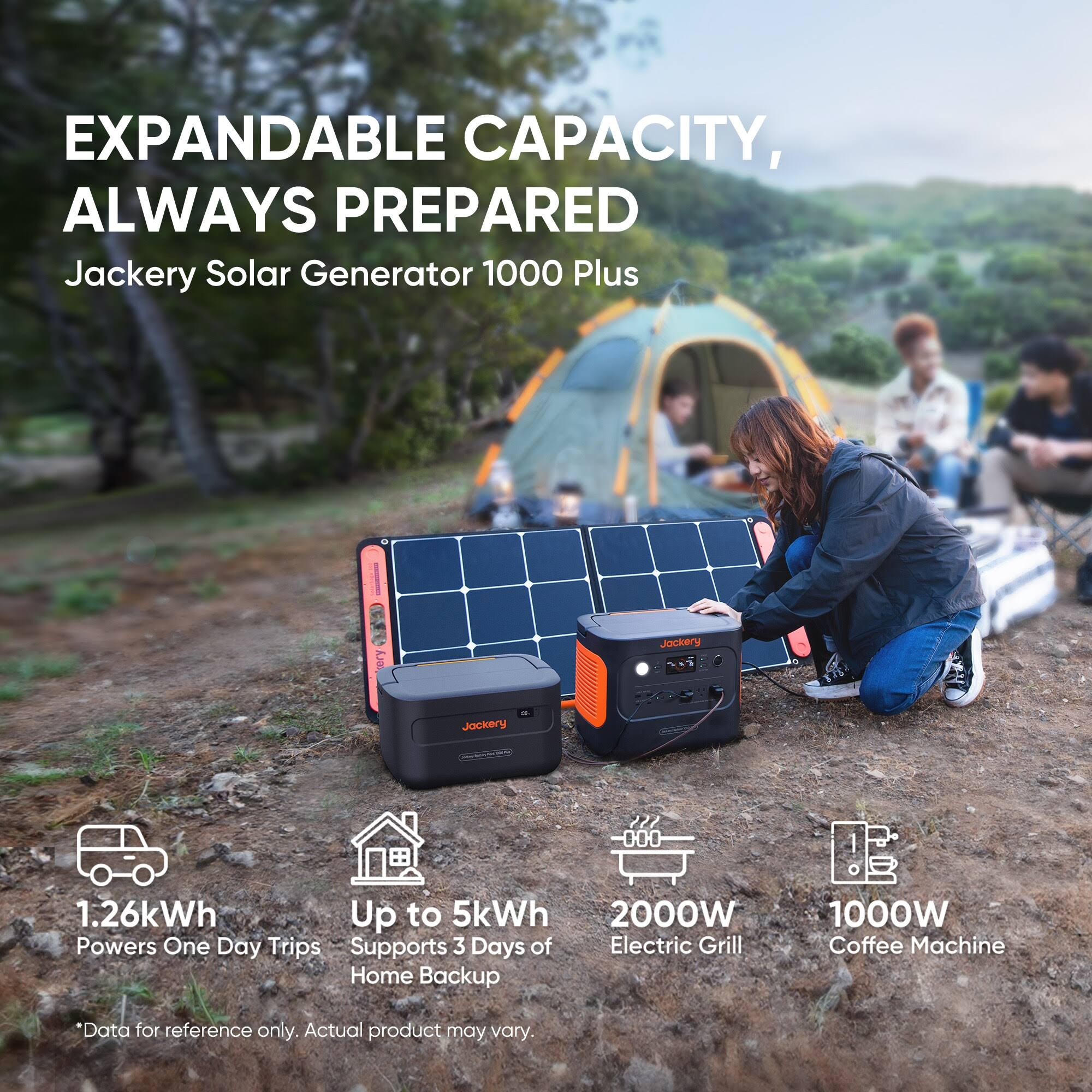 Jackery Explorer 1000 Plus Solar Generator for Outdoor Off-Grid Activities, 2000W output(4000W Surge) to Power Up to 8 Devices at Once