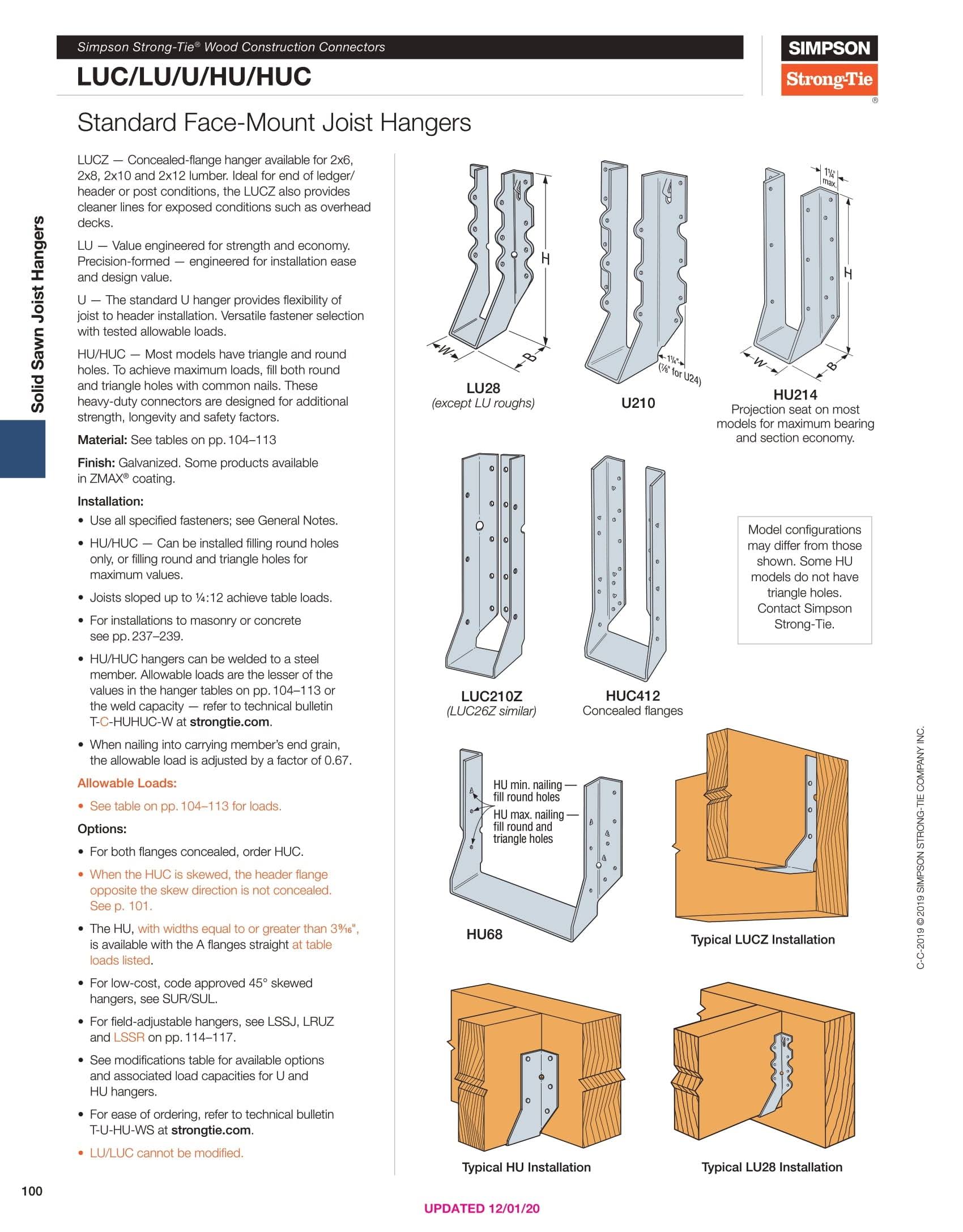 Simpson Strong-Tie LUC26Z Joist Hanger Concealed 2x6