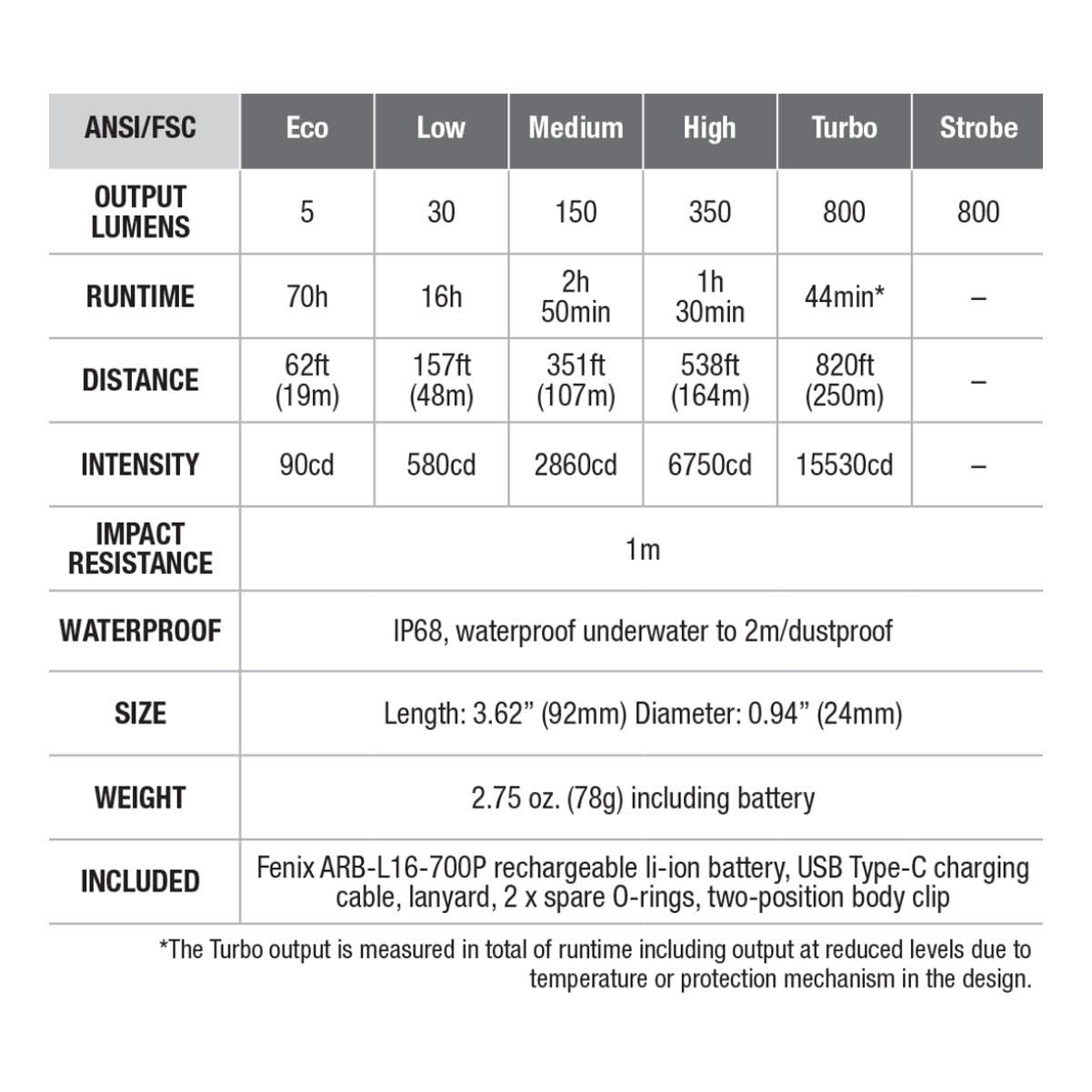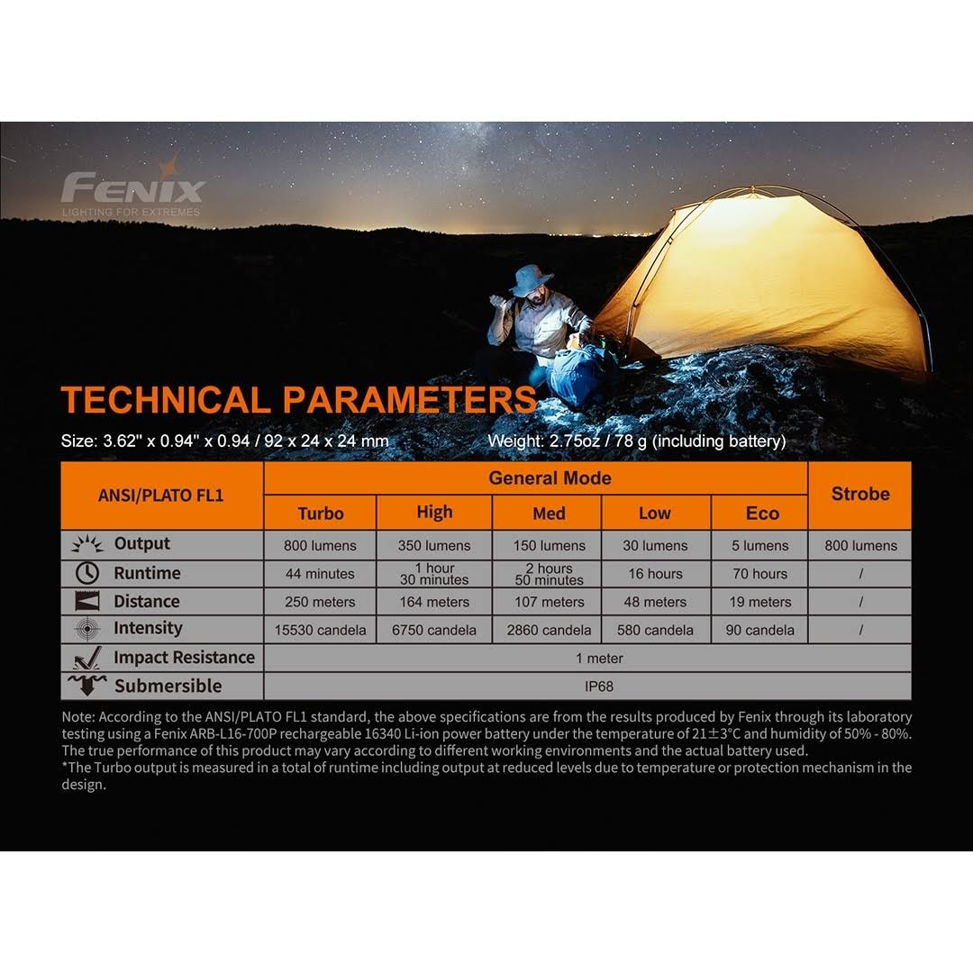 Fenix PD25R EDC Flashlight USB-C Rechargeable 800 Lumens