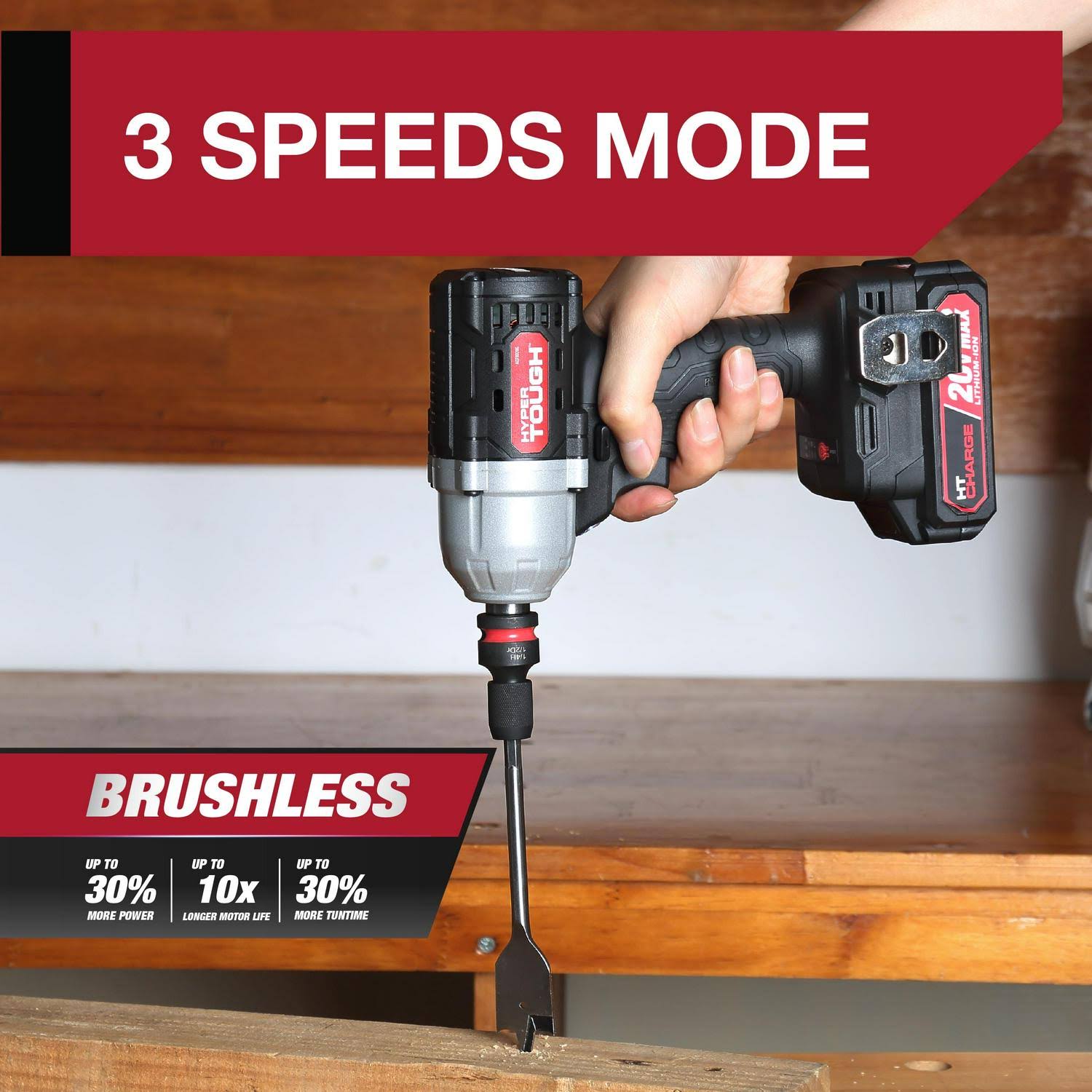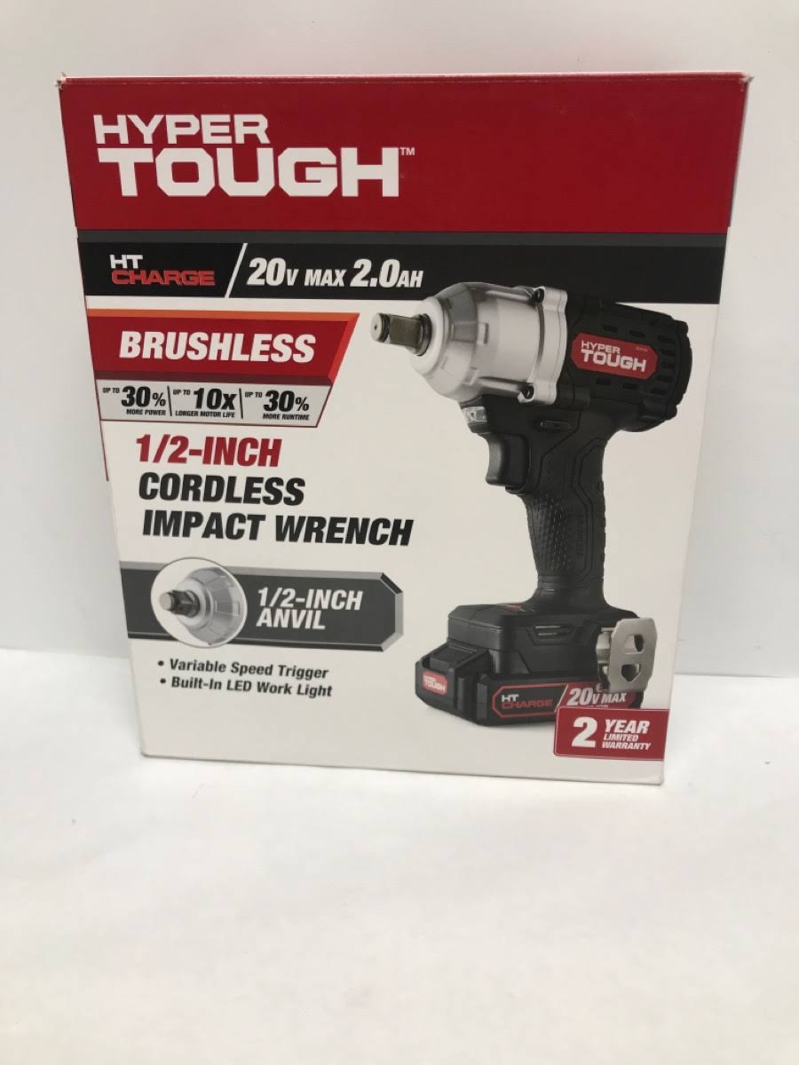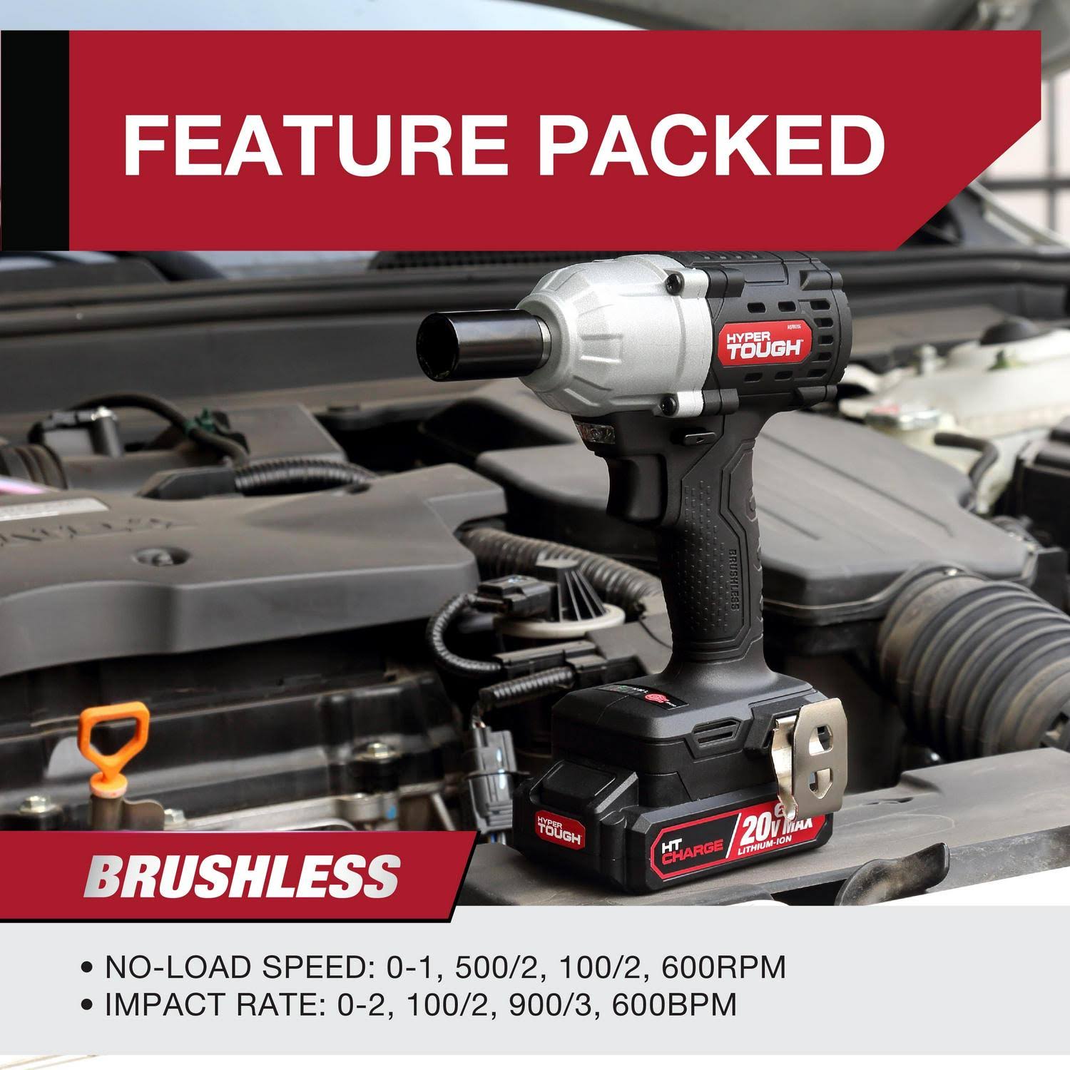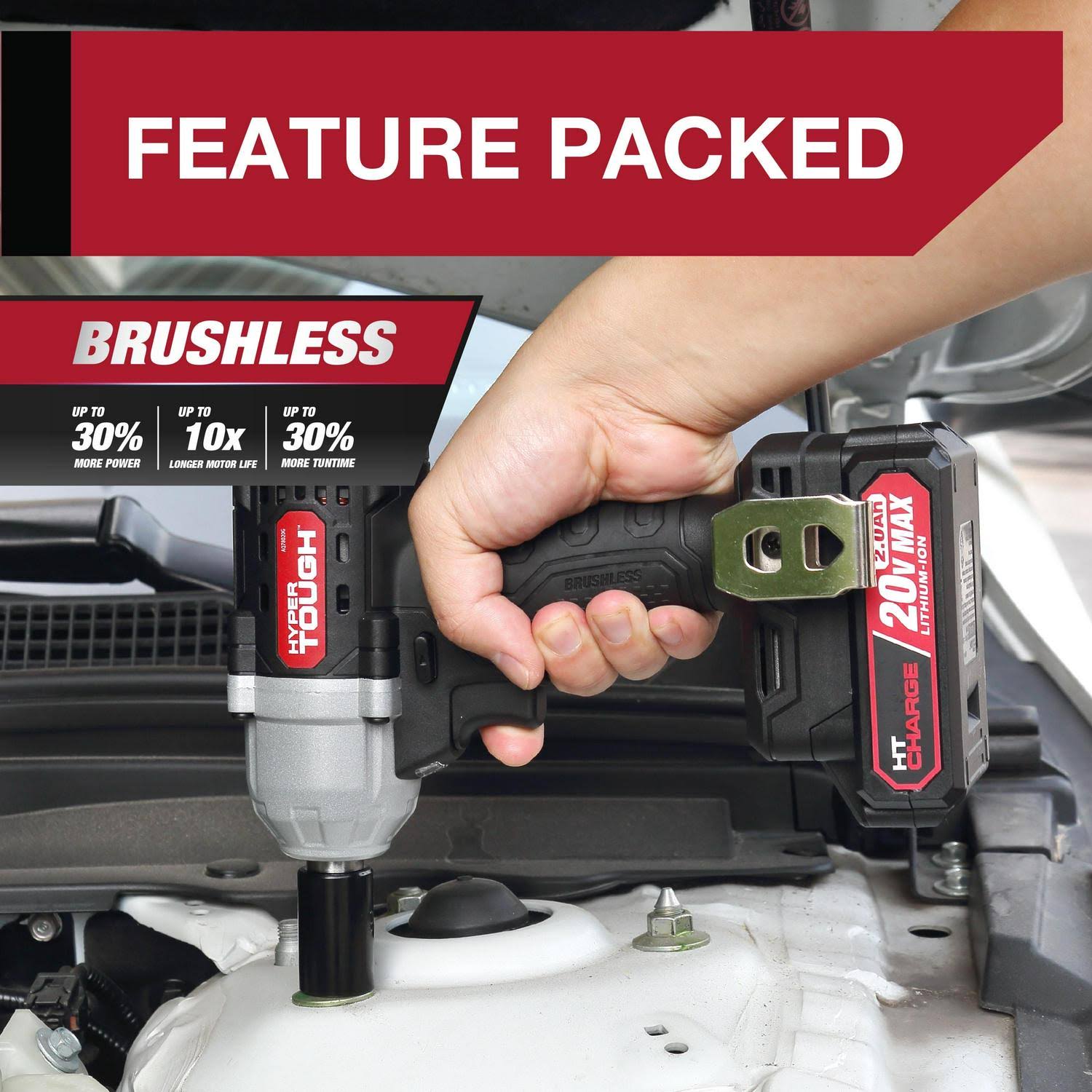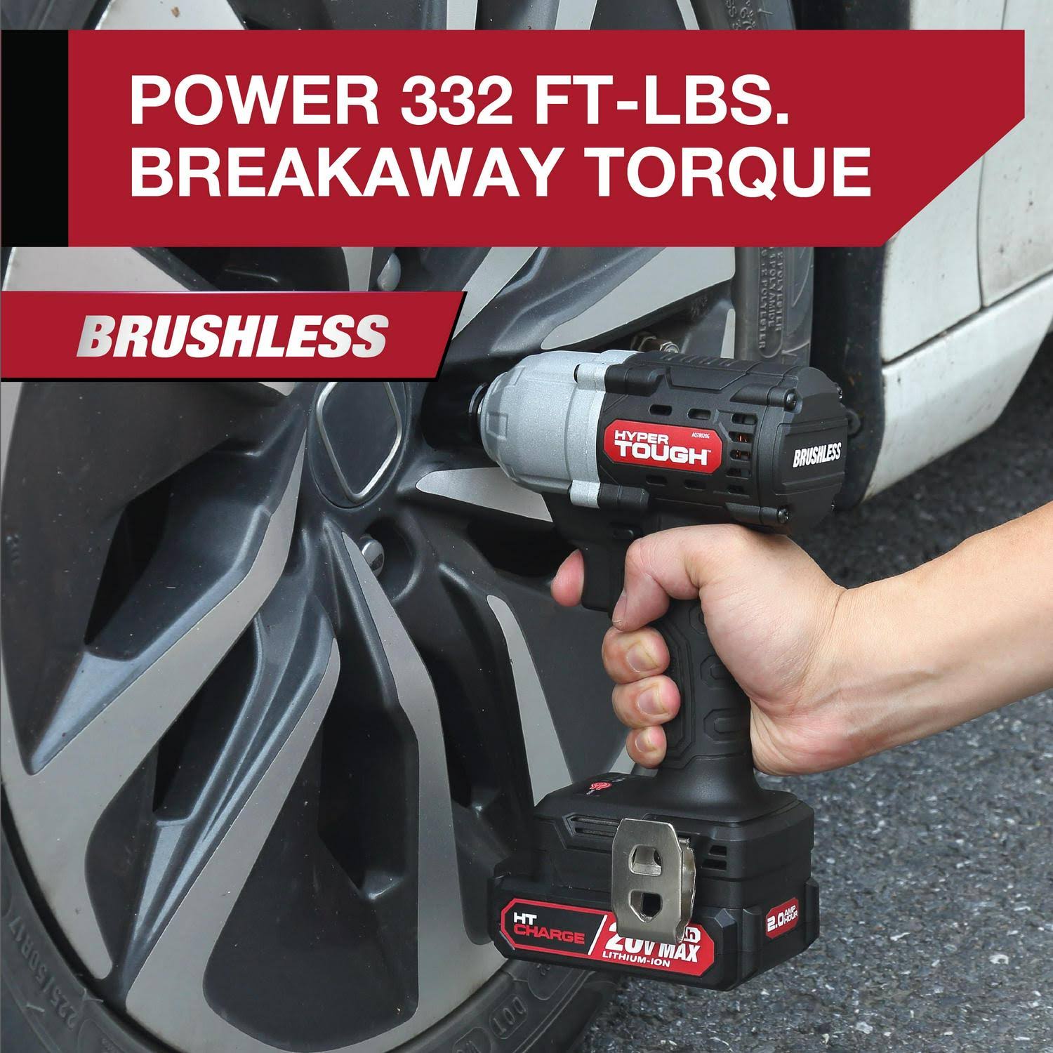 Hyper Tough Brushless 20V Max Lithium-Ion Cordless Impact Wrench, 1/2 inch Anvil, with 2.0Ah Lithium-Ion Battery & Charger, Size: 3/8 inch