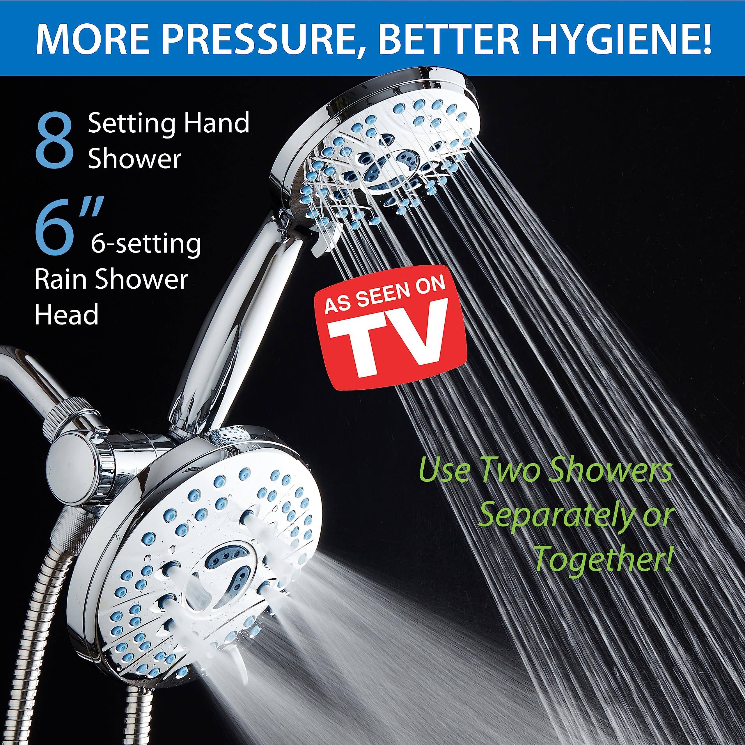 AquaCare As-seen-on-tv High Pressure 50-mode Rain & Handheld 3-Way Shower Head Combo- Anti-Clog Nozzles/Tub, Tile & Pet Power Wash/Extra Long 6 ft.