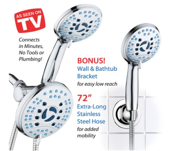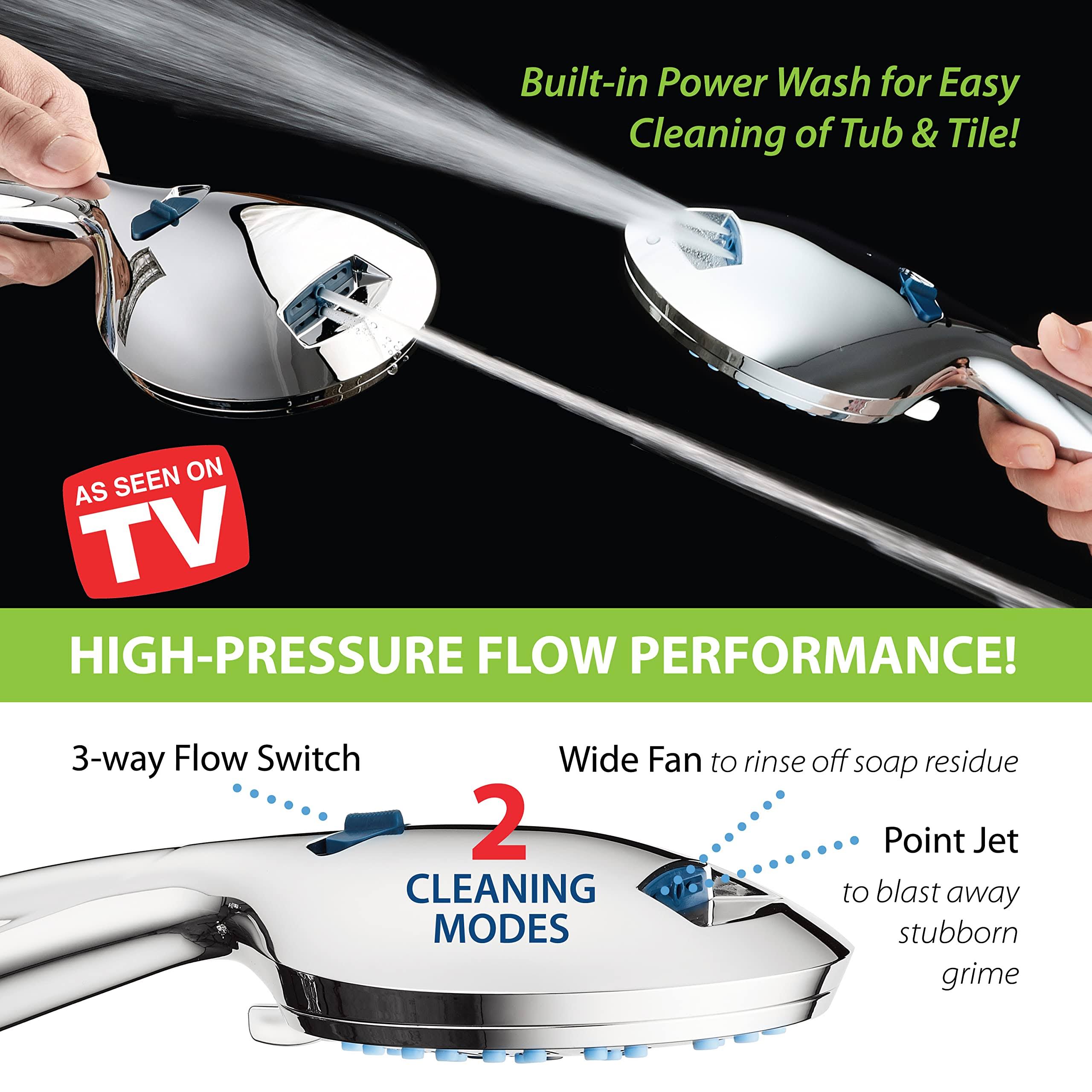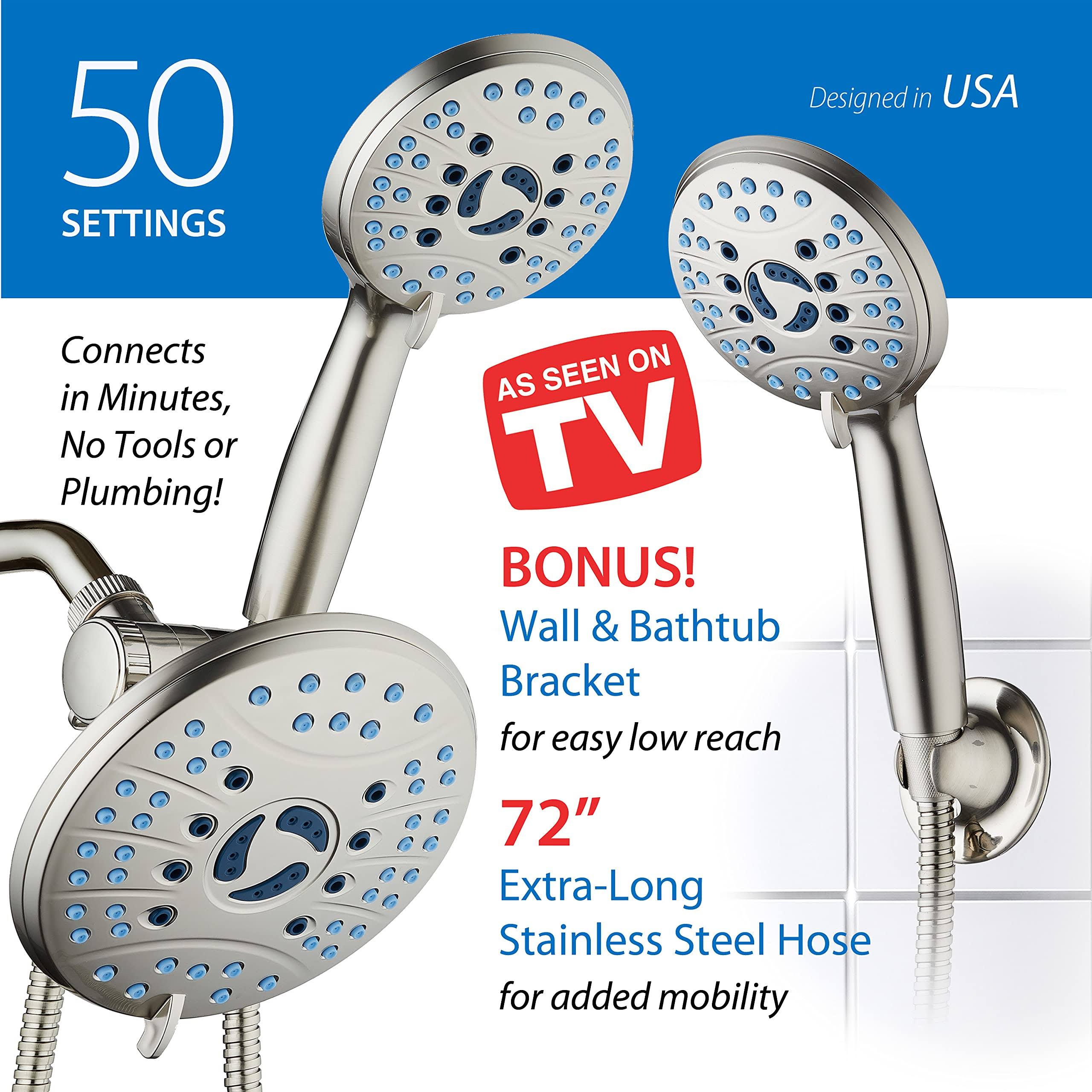 Hotel Spa AquaCare As-seen-on-tv High Pressure 50-mode Rain Handheld 3-Way Shower Head Combo- Anti-Clog Nozzlestub, Tile Pet Power Wash 4237