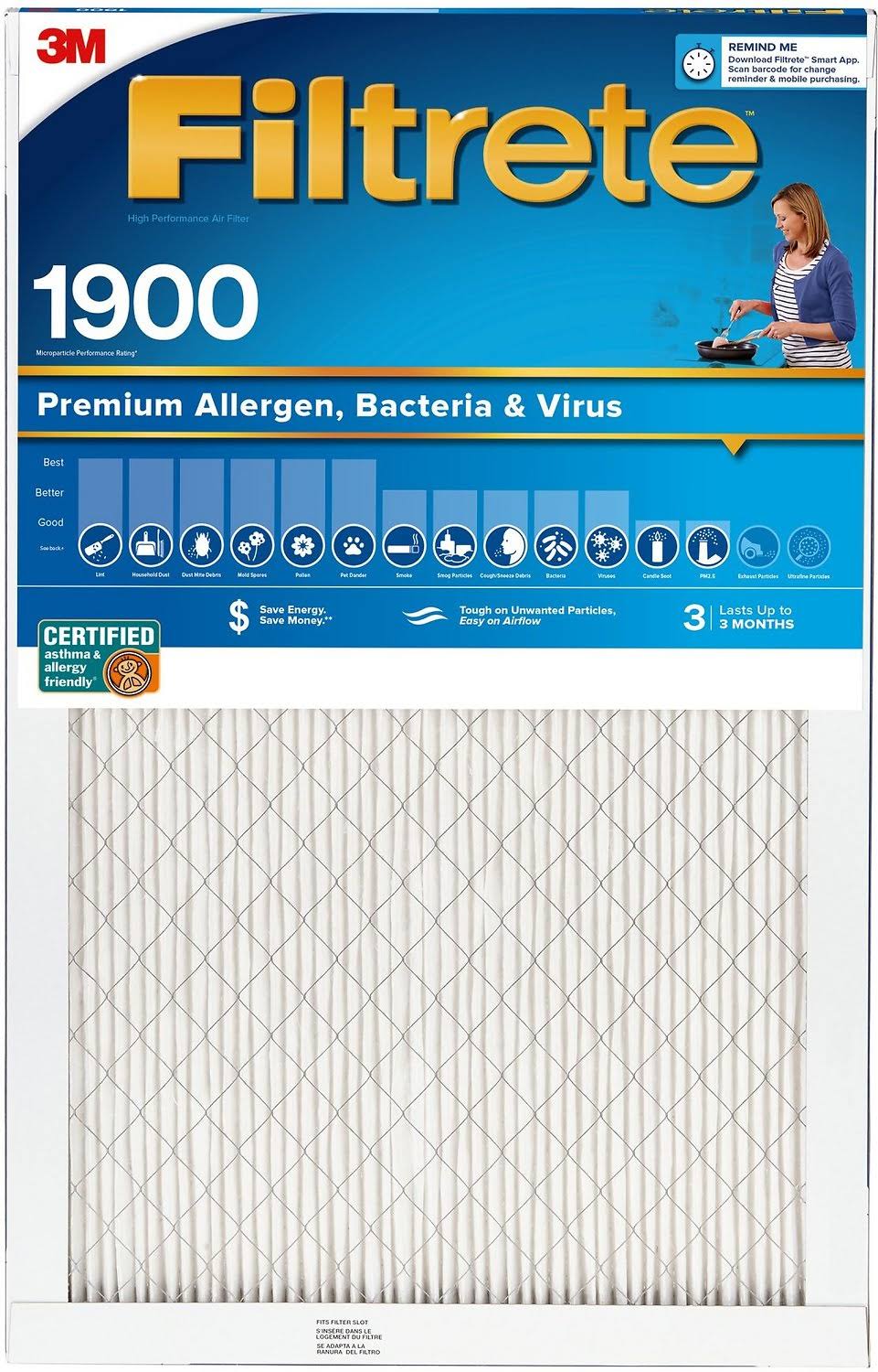 Filtrete 12" x 12" x 1" 1900 MPR Premium Allergen, Bacteria & Virus Electrostatic Pleated Air Filter- Each