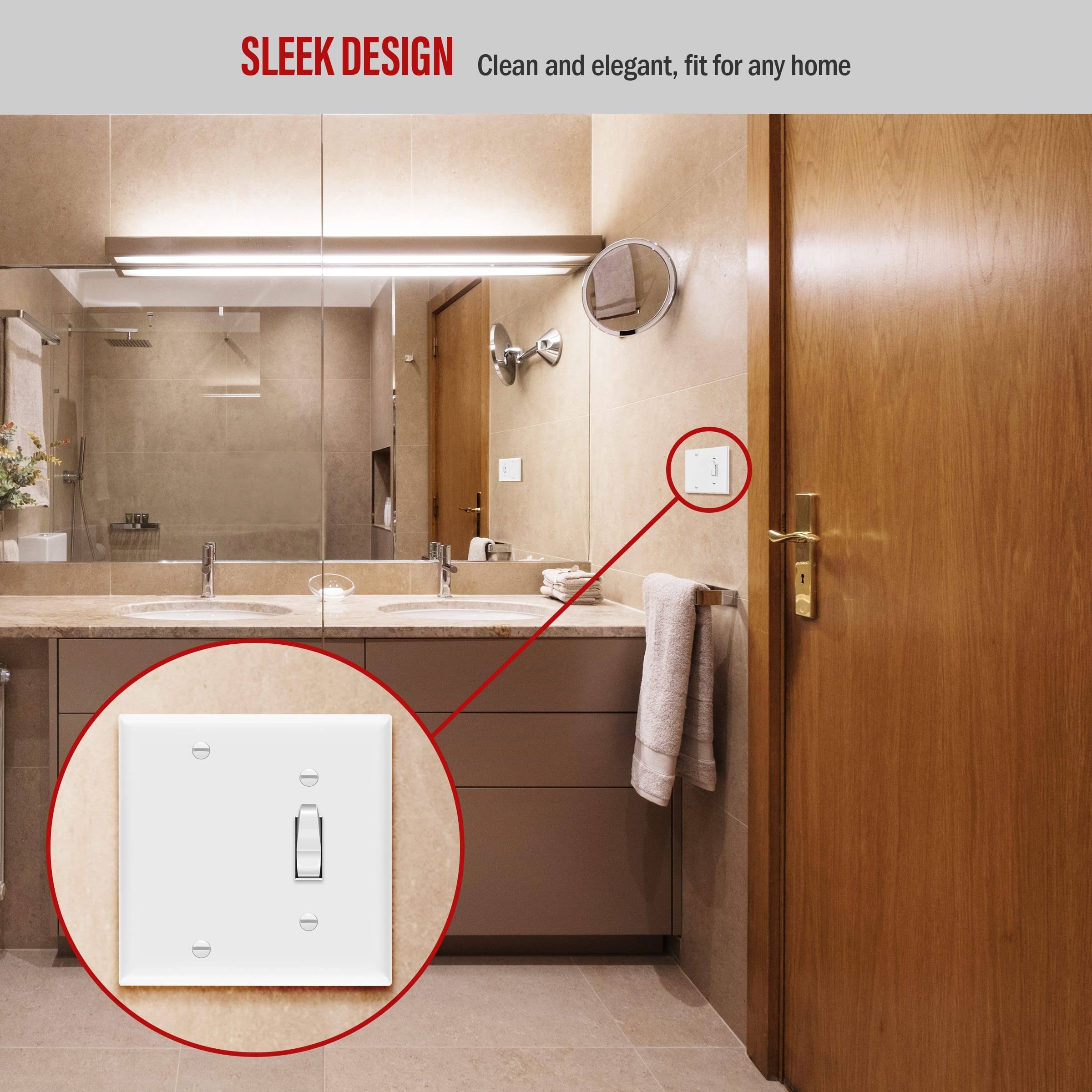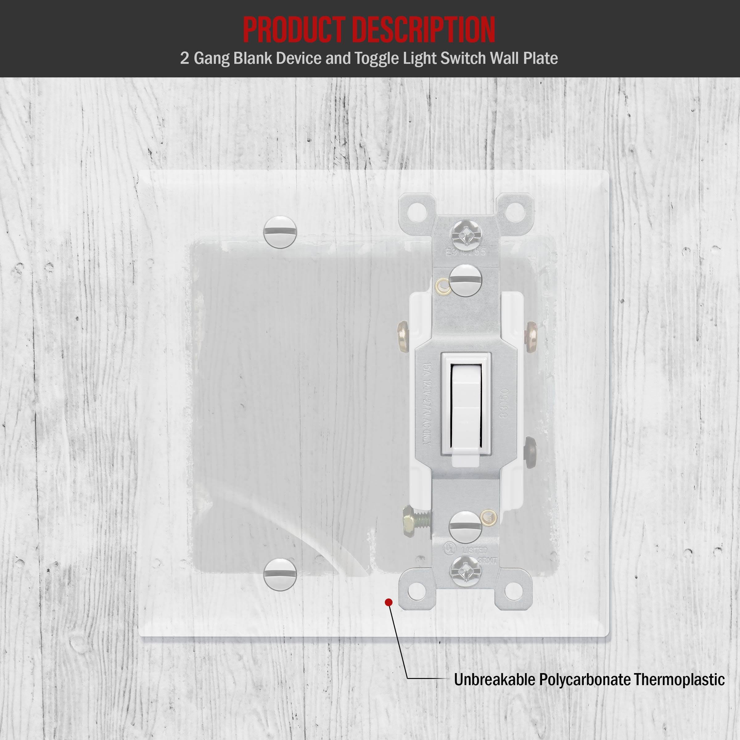 Enerlites 880111-W 2-Gang Blank/Toggle Wall Switch Plate, Standard size, Unbreakable Polycarbonate, White