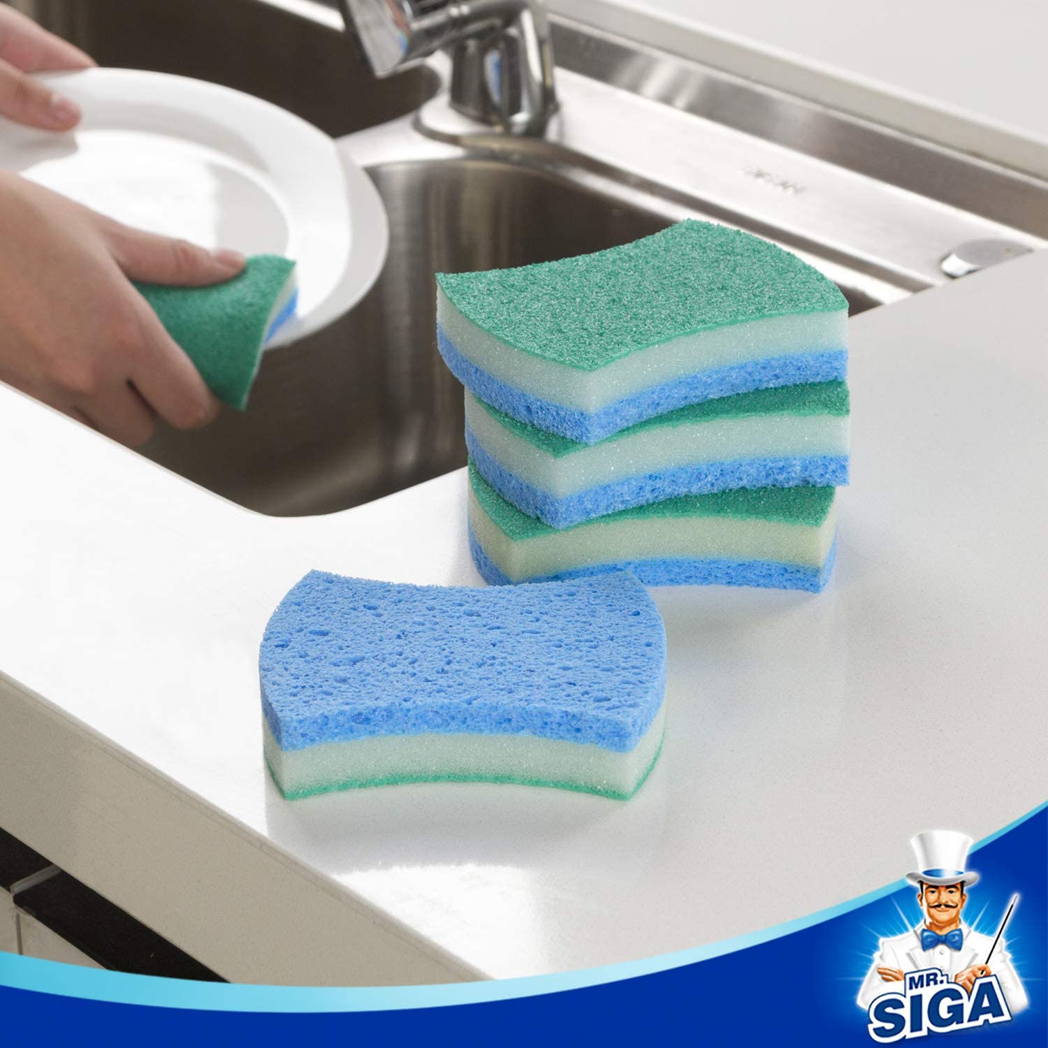 MR.SIGA Multi-Use Cellulose Scrub Sponge. Dual-Sided Dishwashing Sponge 12 Pack