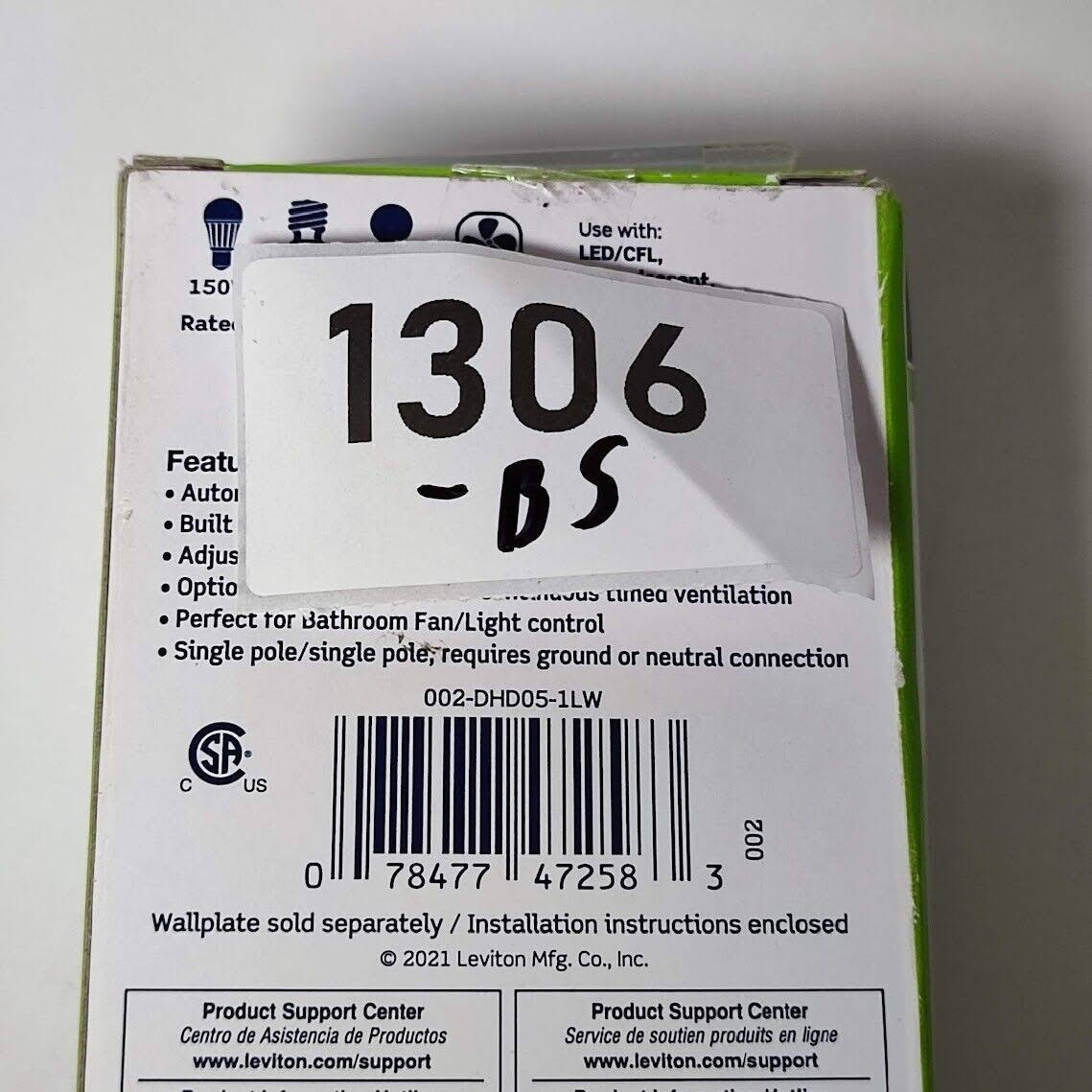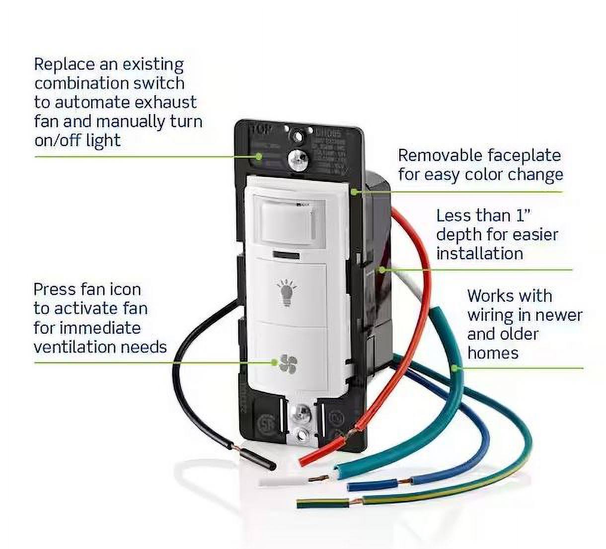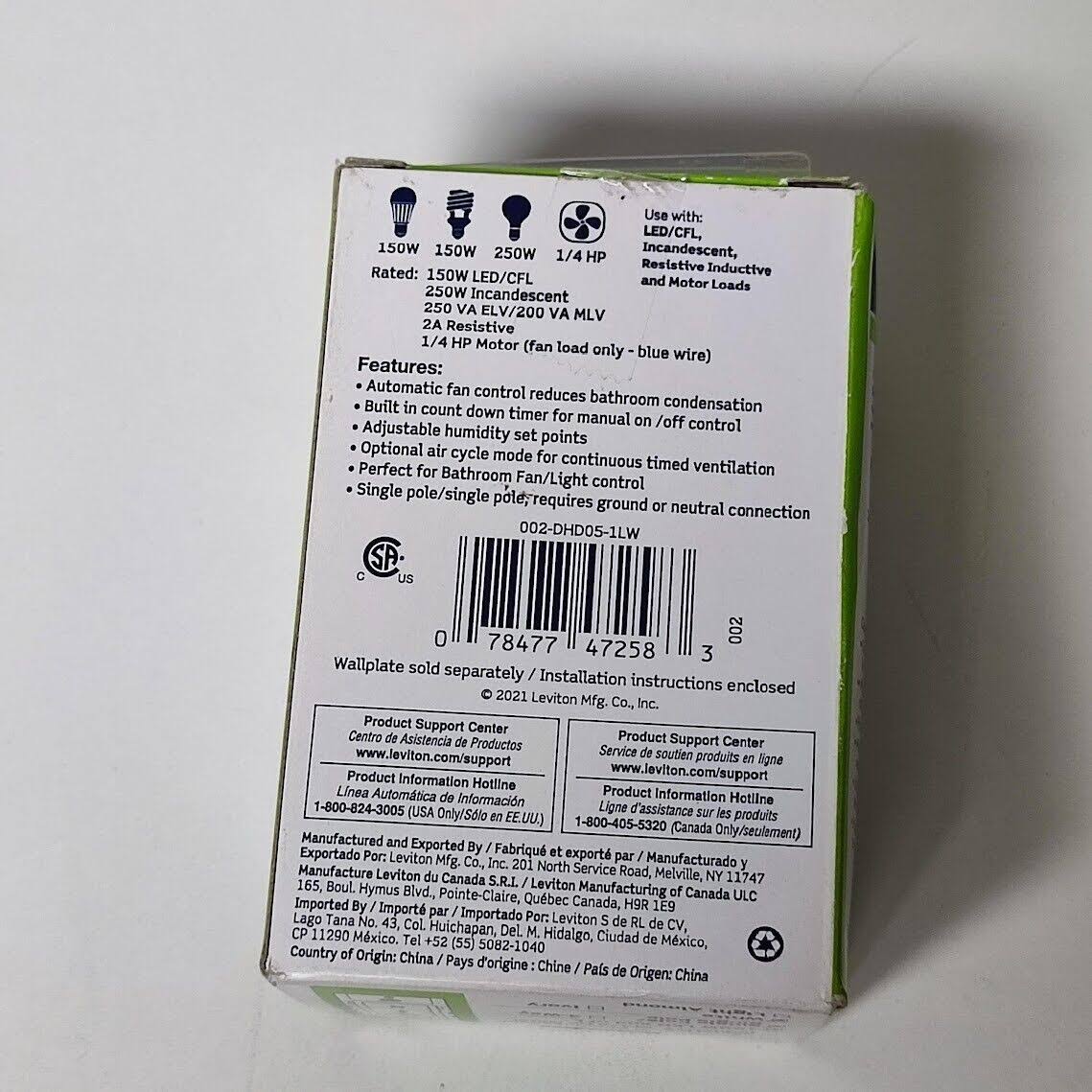 Leviton Decora In-Wall Combination Humidity Sensor & Fan Control w/Light Switch