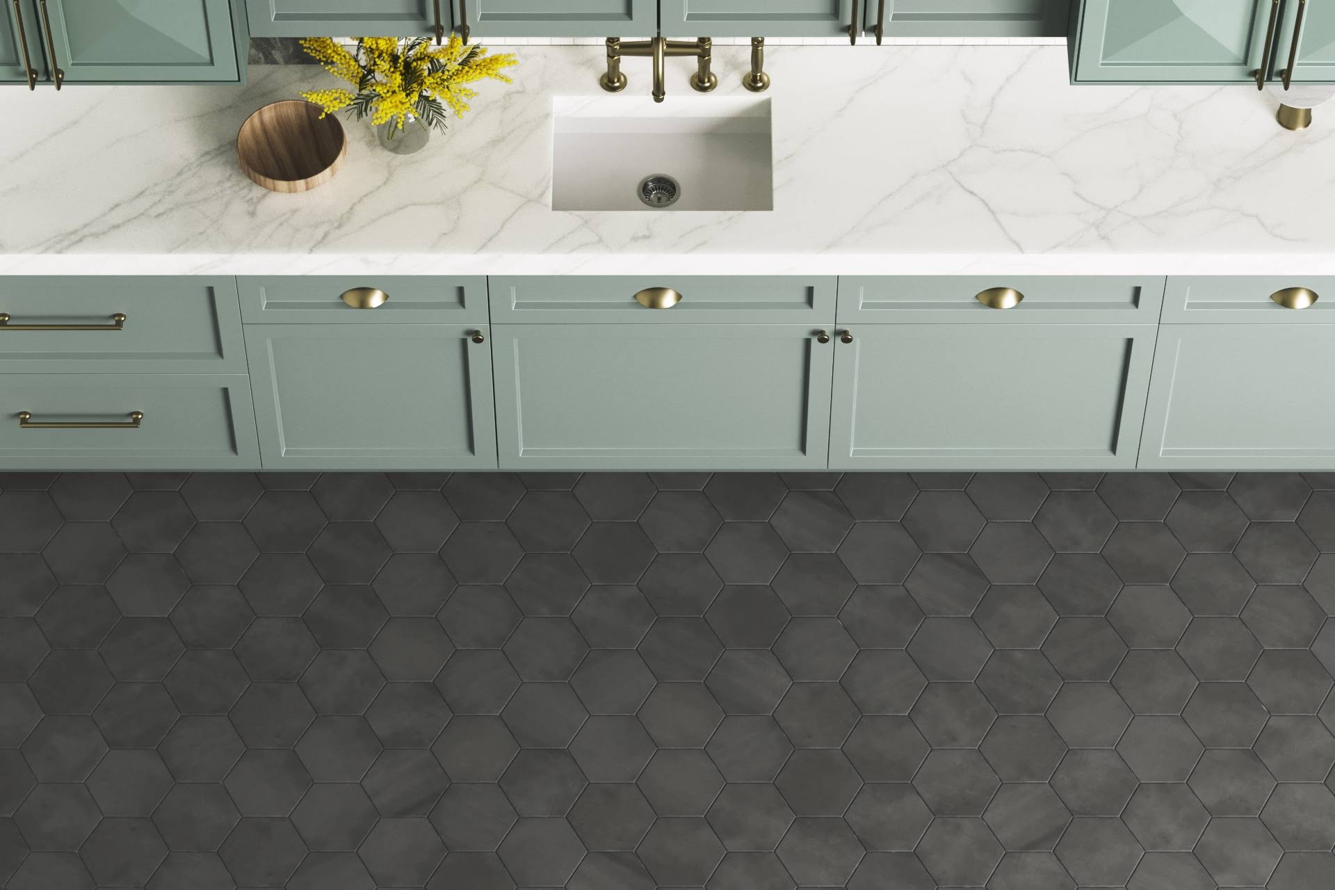 Satori Nouveau Nero Hexagon 7-in x 8-in Matte Porcelain Encaustic Floor and Wall Tile (0.28-sq. ft/ Piece)