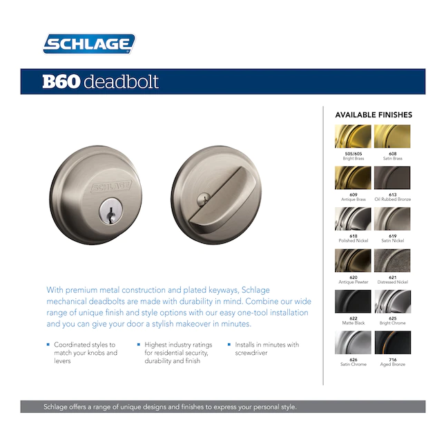 Schlage Deadbolt Aged Bronze Single Cylinder Deadbolt