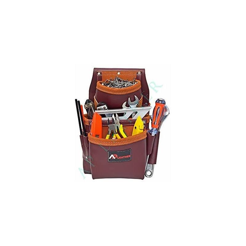 AP-Leather Pro-19 100% Genuine Full Grain Leather Tool Belt/Pouch/Bag, Tool Belt with Suspenders, Comfort Back Support Tool Pouches with Suspenders