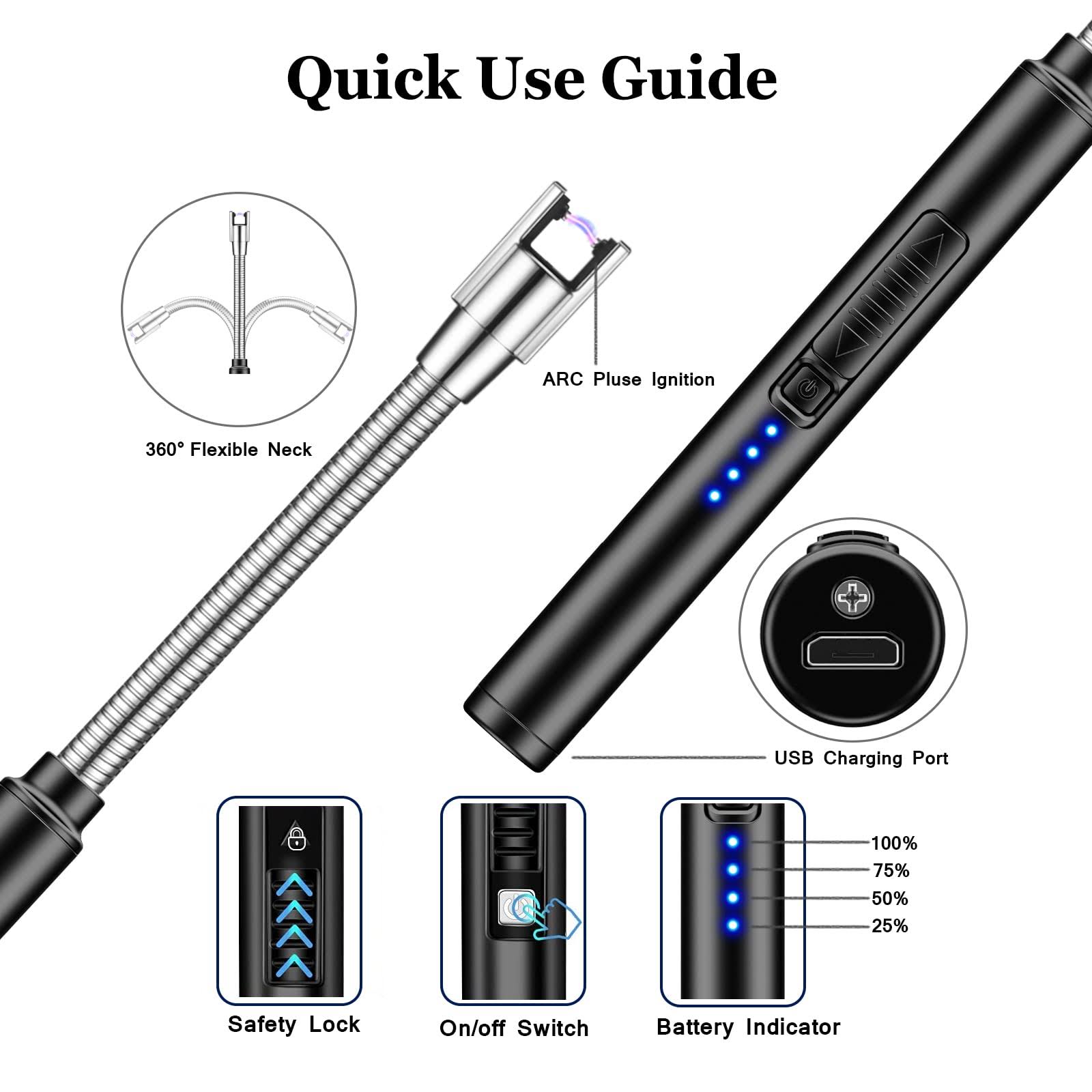 NNVNOZR 2 Pack Lighter Candle Lighter USB Rechargeable Safety Arc Flameless Windproof Long Lighter for Camping Grill Family Home Use