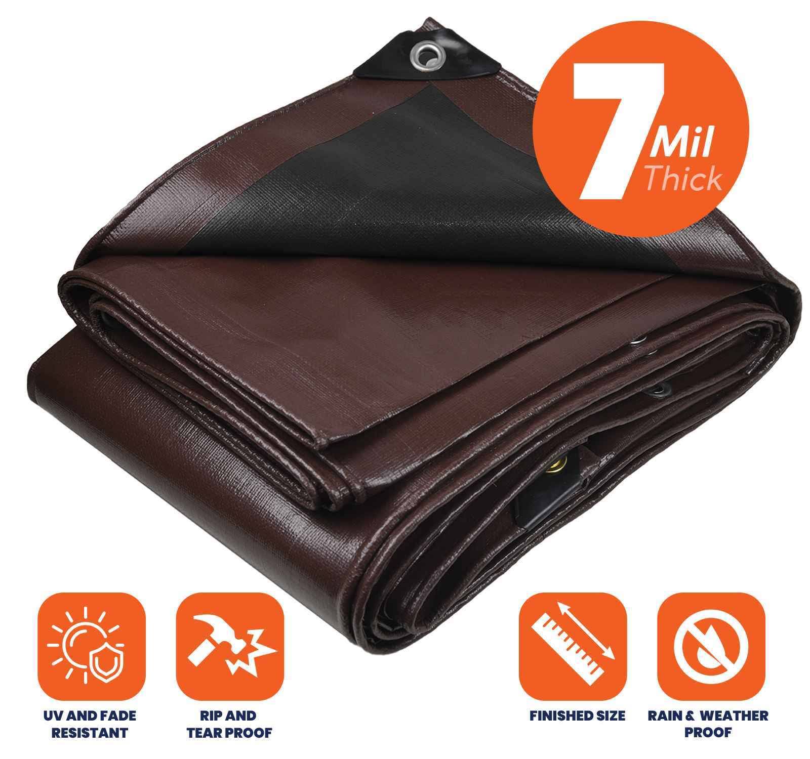 Tarpco Safety Heavy Duty 7 Mil Tarp, Brown/Black 6 x 8