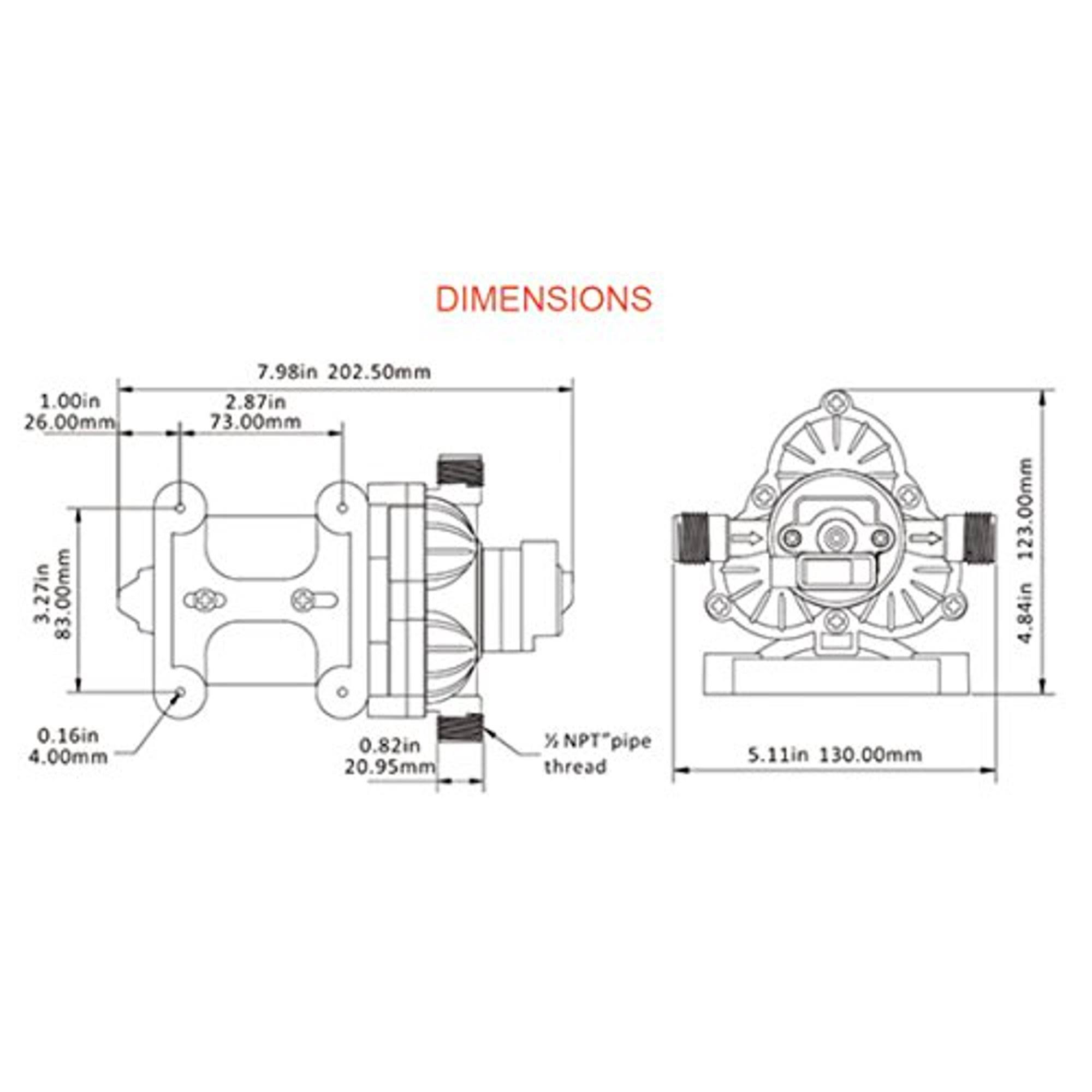 Water Diaphragm Self Priming Pump 3.0 Gallons/min (11.3 lpm) 45 PSI New RV / Marine 12 Volt DC / 12 V Demand Fresh
