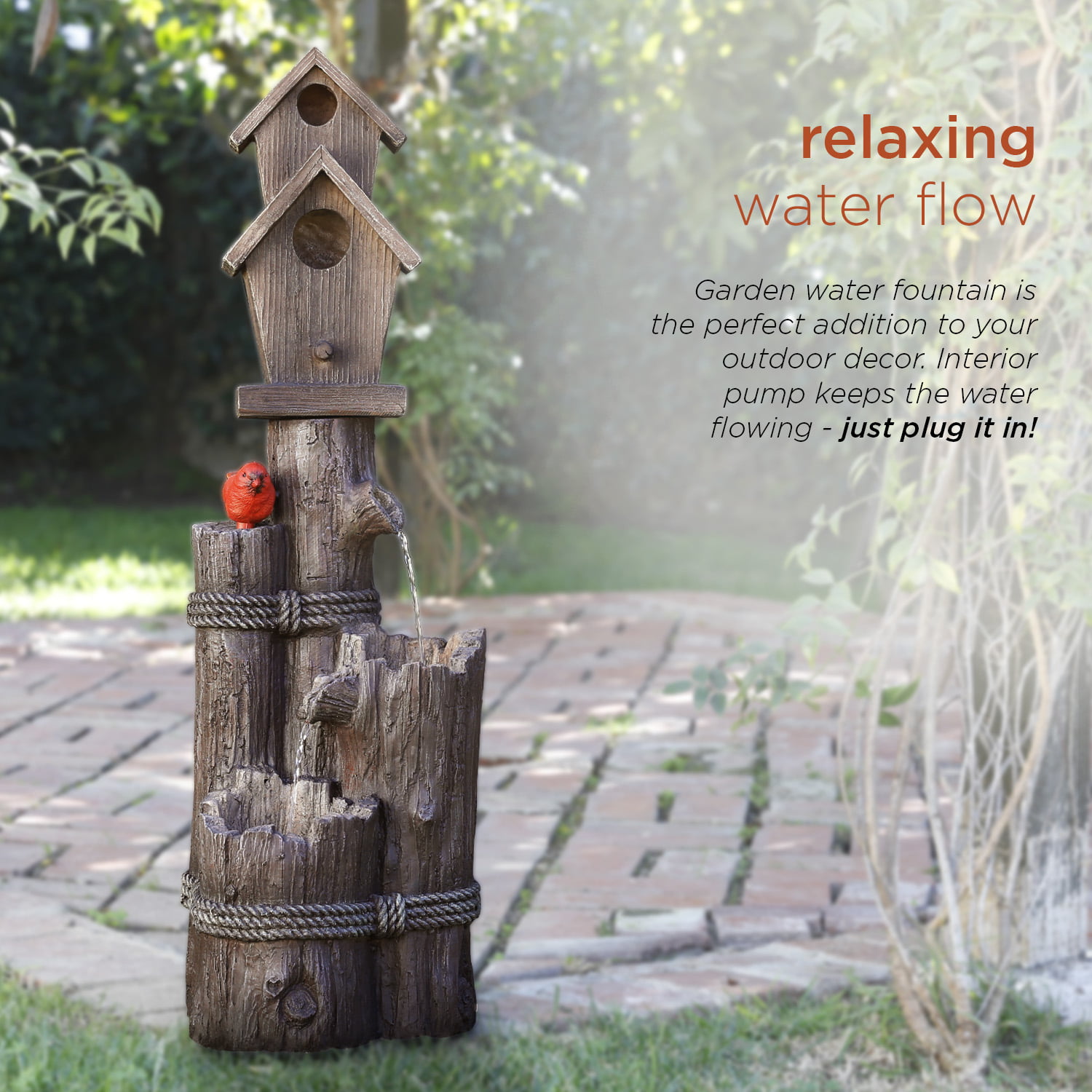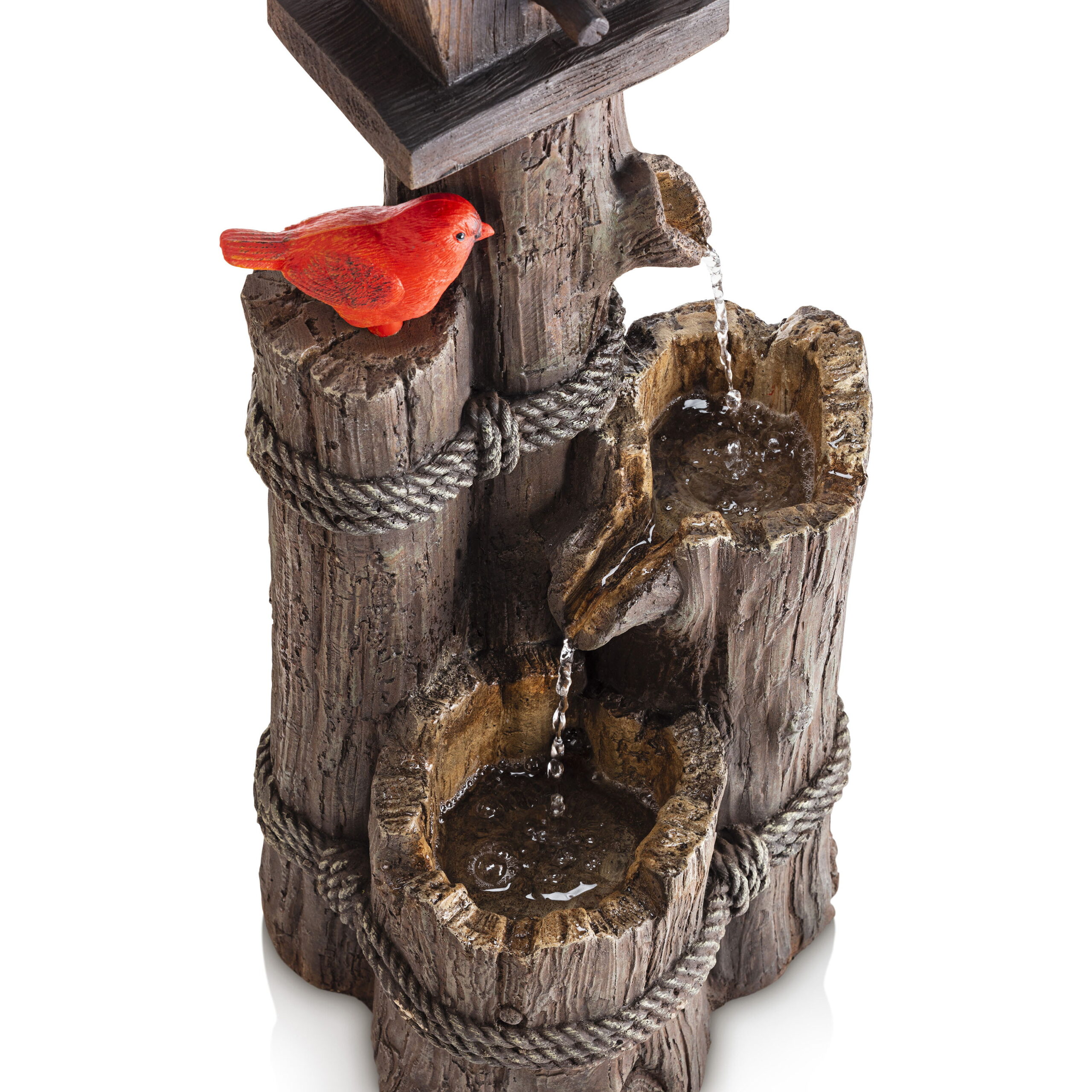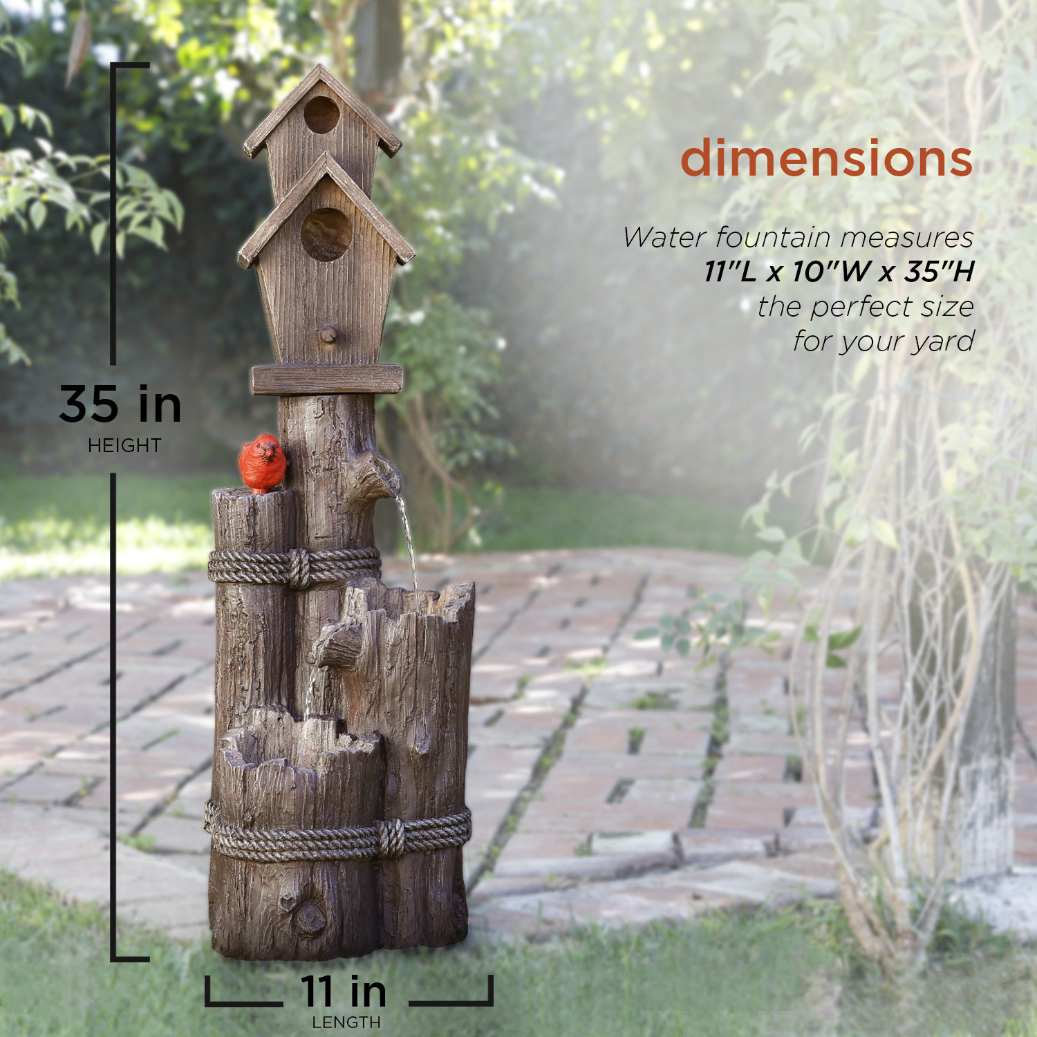 Alpine Corporation 35-Inch Fountain and Birdhouse with Cardinal Figurine