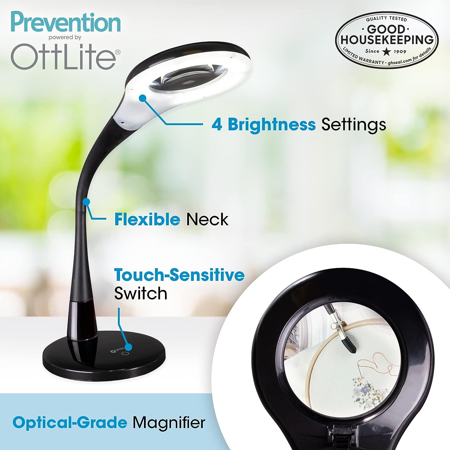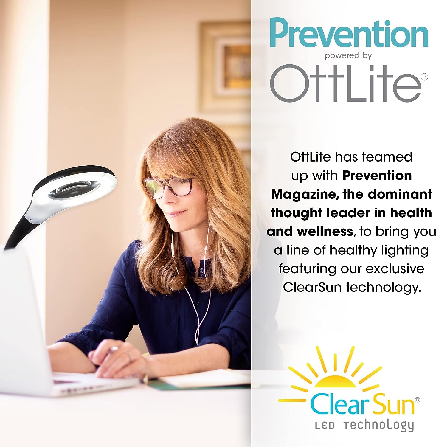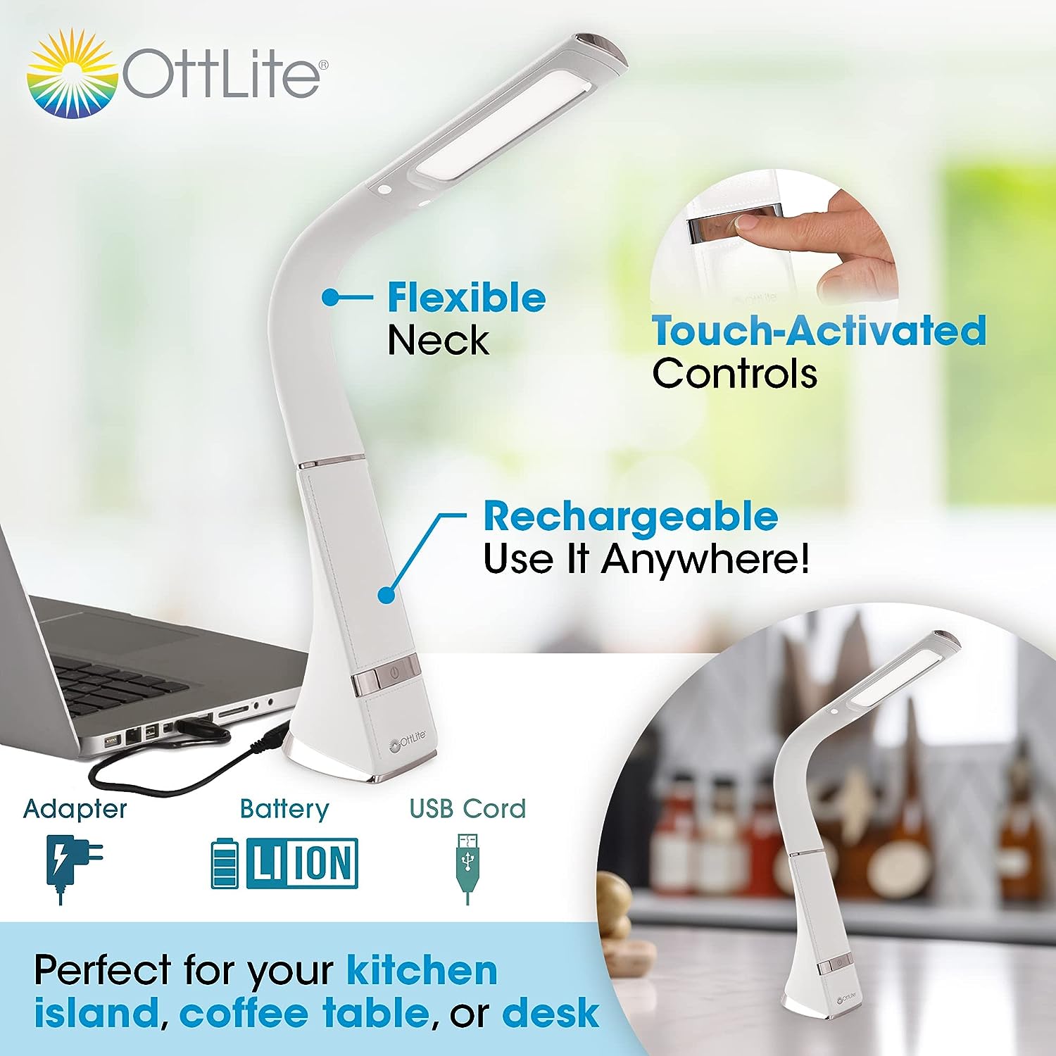 OttLite Recharge LED Desk Lamp with ClearSun LED Technology for Home. Reading. Office & College Dorms - White