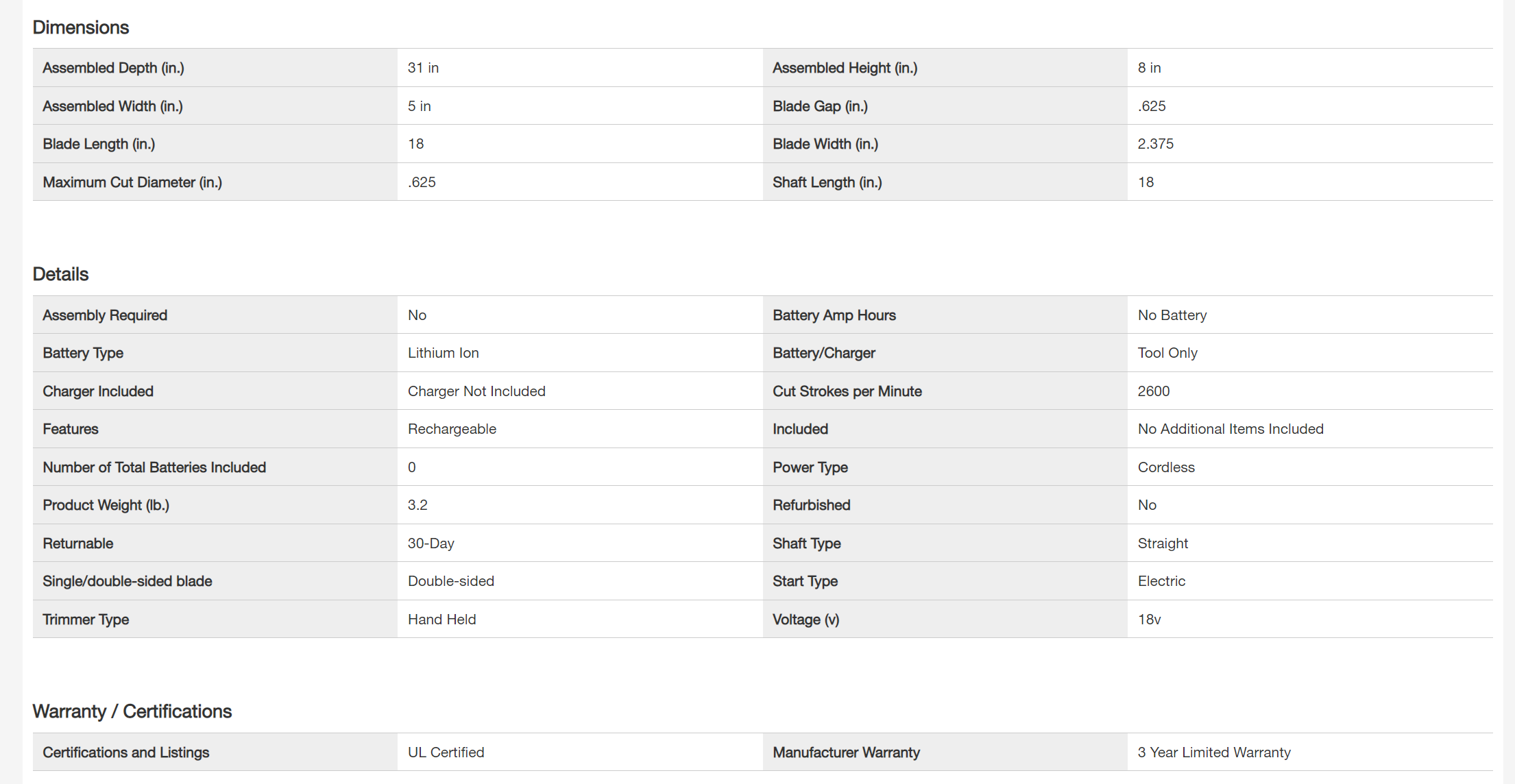 RYOBI P2607BTL ONE+ 18V 18 in. Cordless Battery Hedge Trimmer (Tool Only)