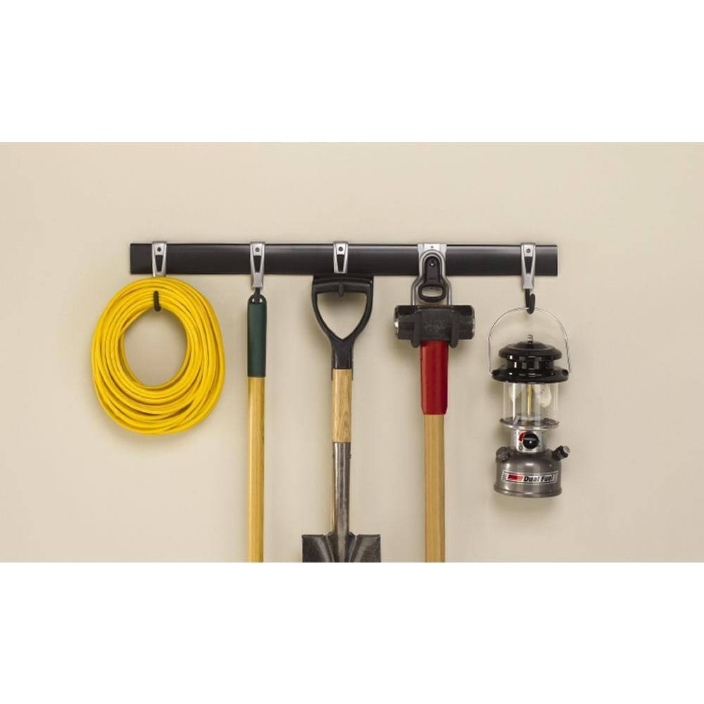 TOOLFLEX 9-5-1 37 in. Universal Garage Storage Rail System with 5 Black One-Size-Fits-All Holders