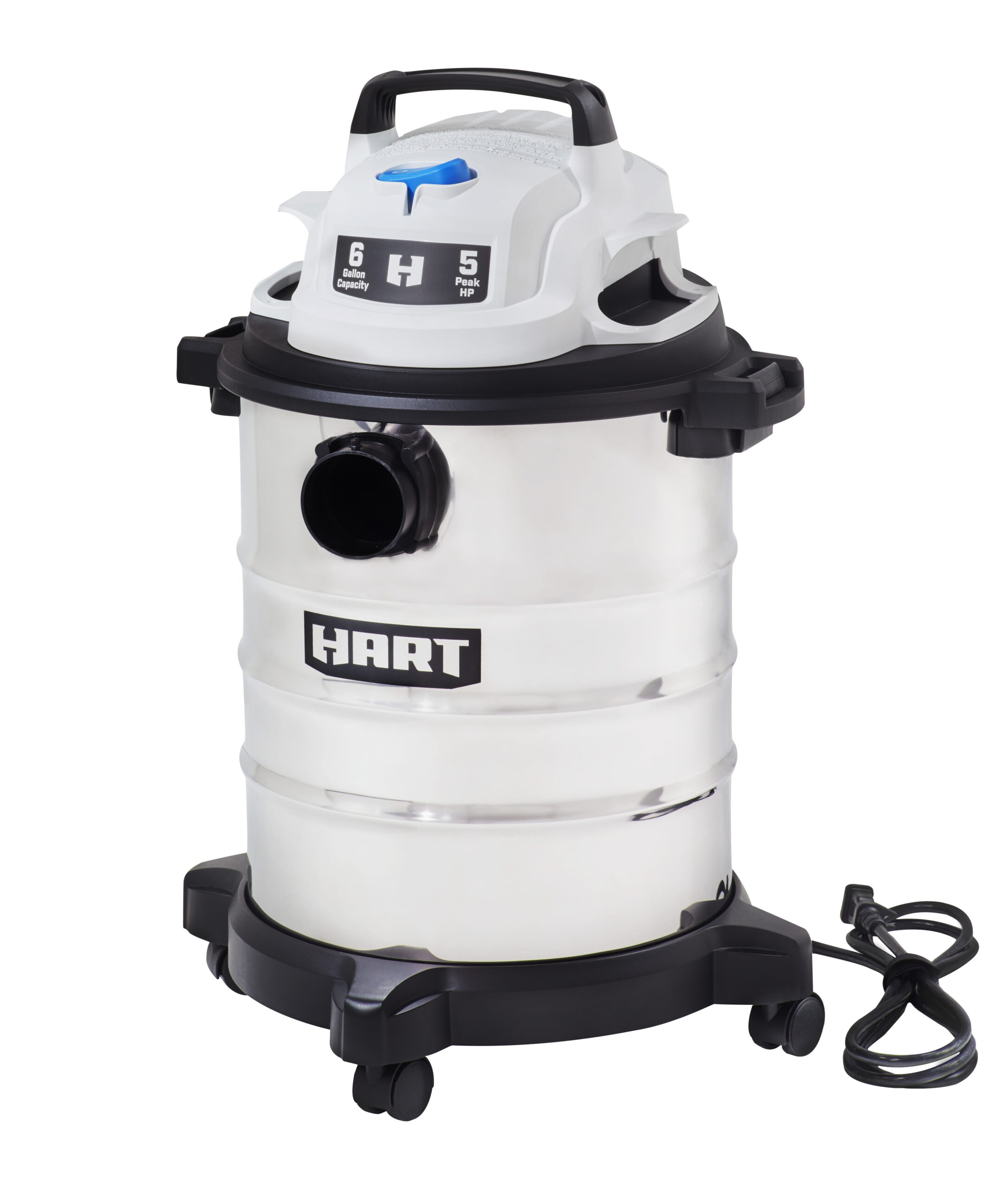 HART 6 Gallon 5 Peak HP Stainless Steel Wet/Dry Vacuum with Cartridge Filter. VOC608S 3702