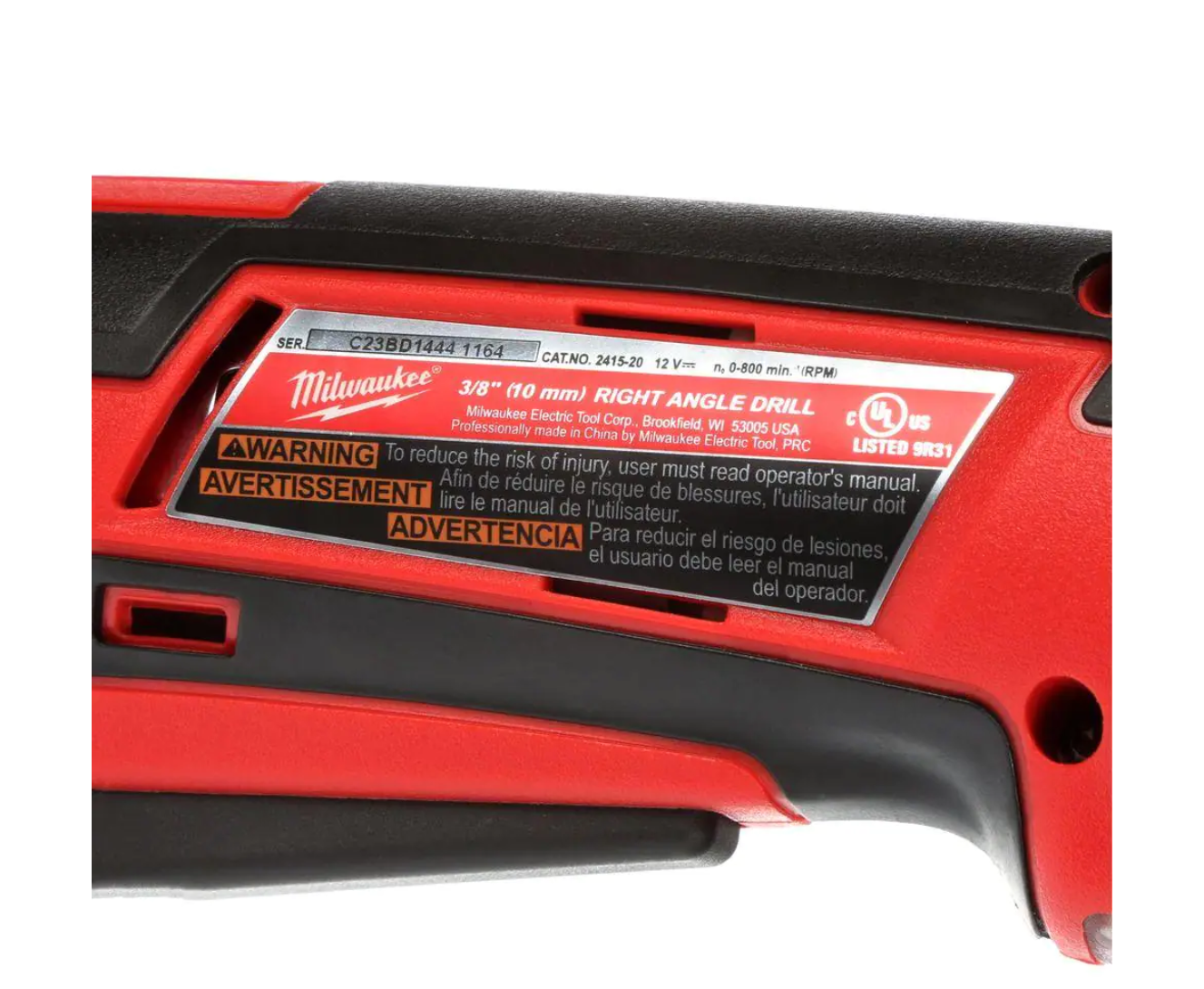 Milwaukee 2415-20 M12 12V Lithium-Ion Cordless 3/8 in. Right Angle Drill (Tool-Only)