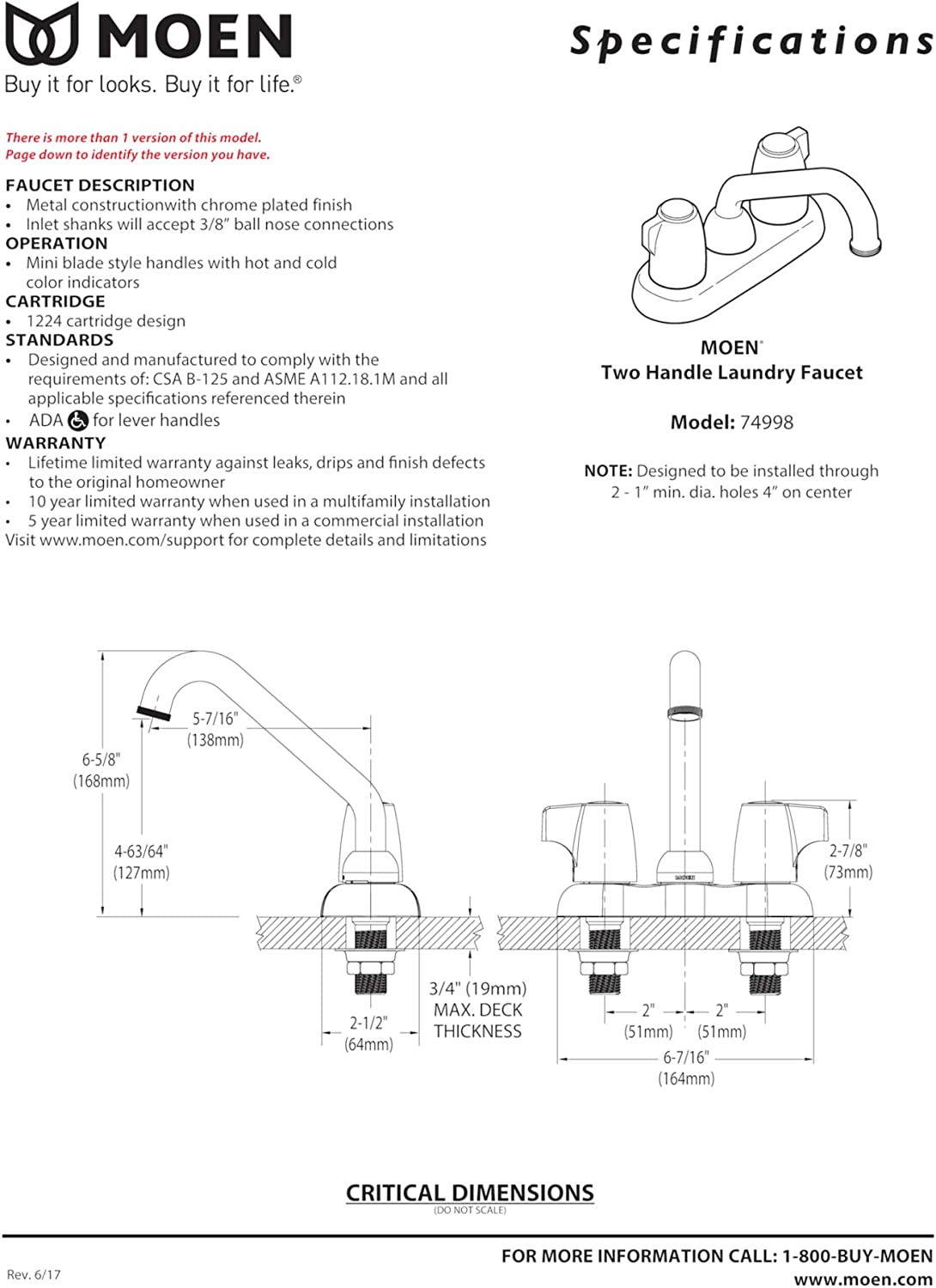 Moen 74998 Chateau Two-Handle 4-Inch Centerset Utility or Laundry Sink Faucet. Chrome