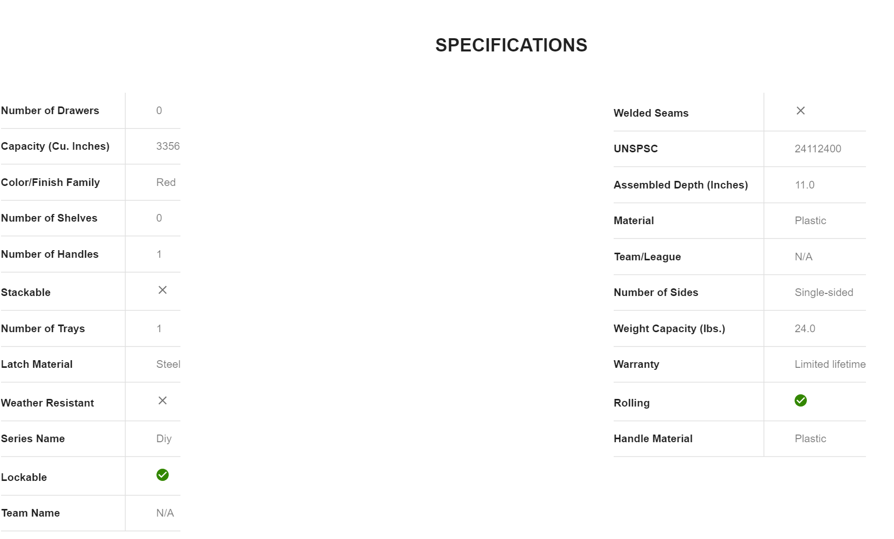 CRAFTSMAN CMST18614 DIY 19-in Red Plastic Wheels Lockable Tool Box