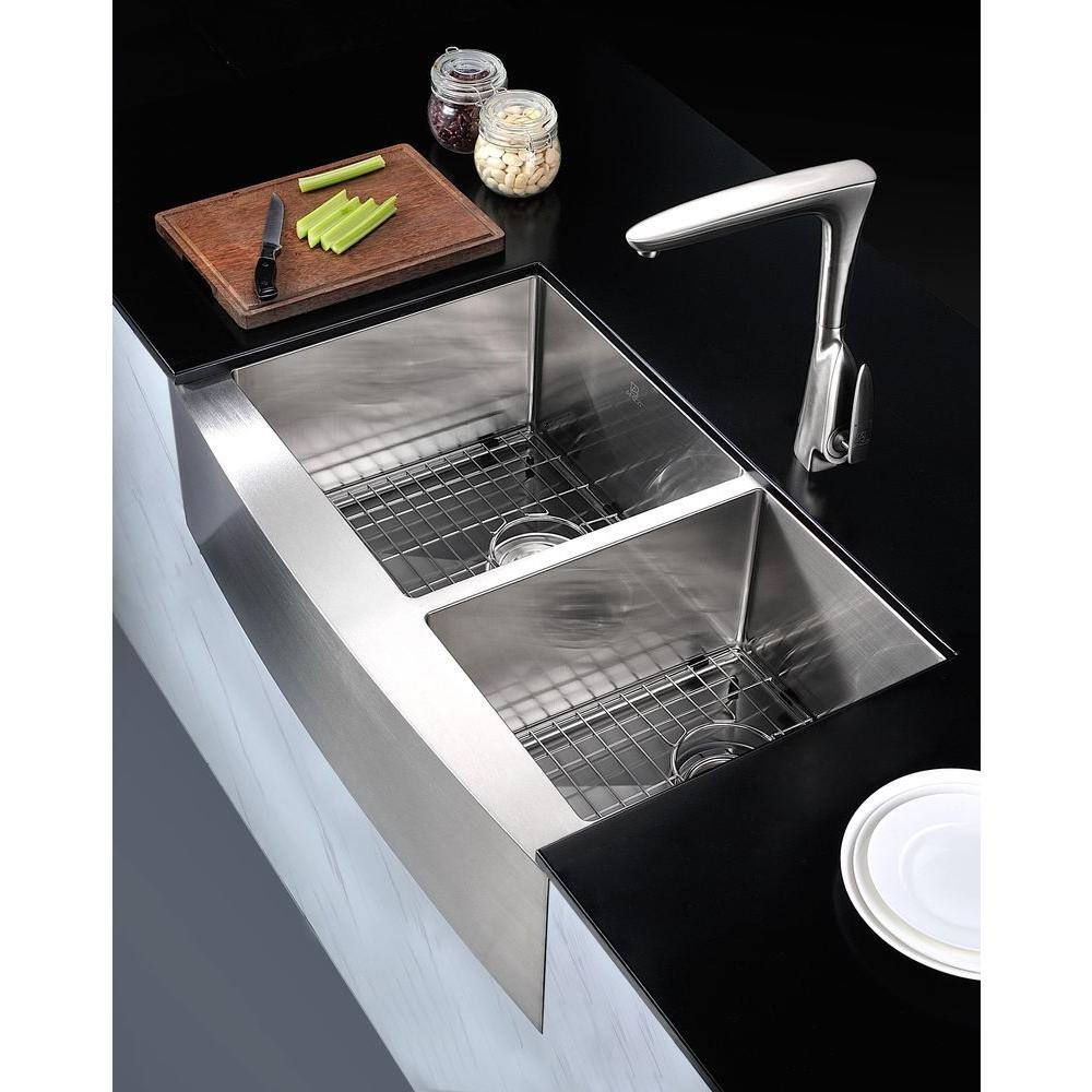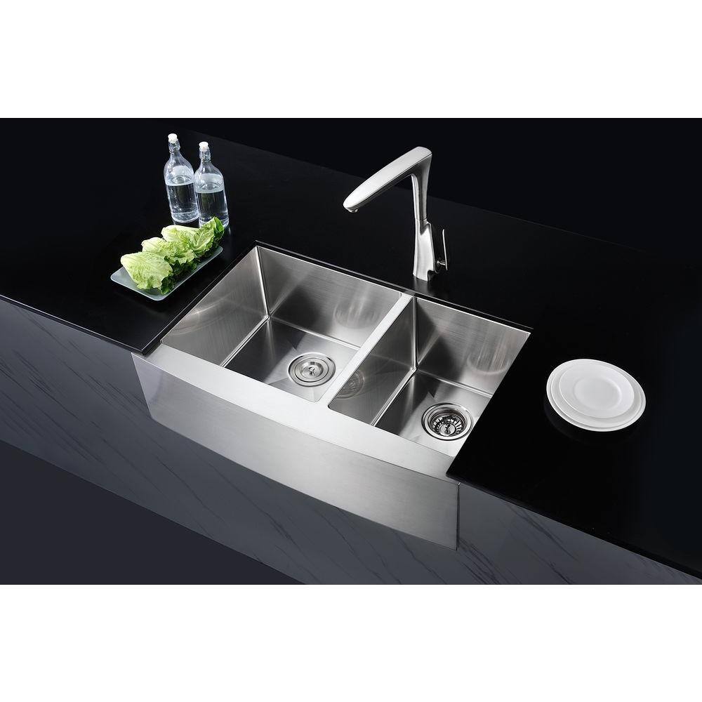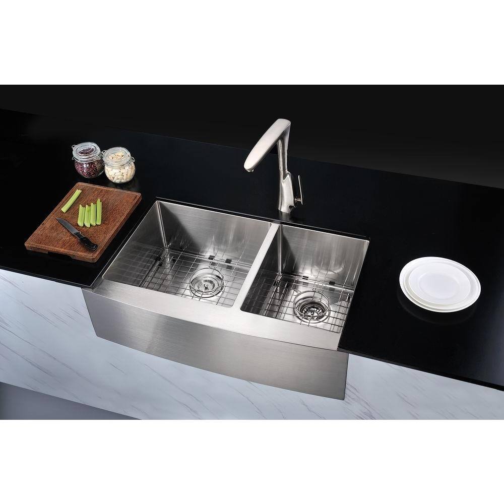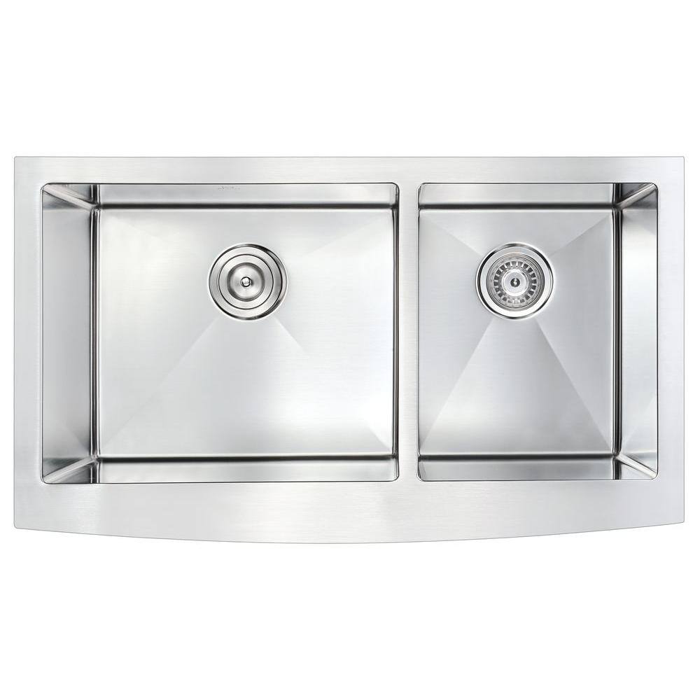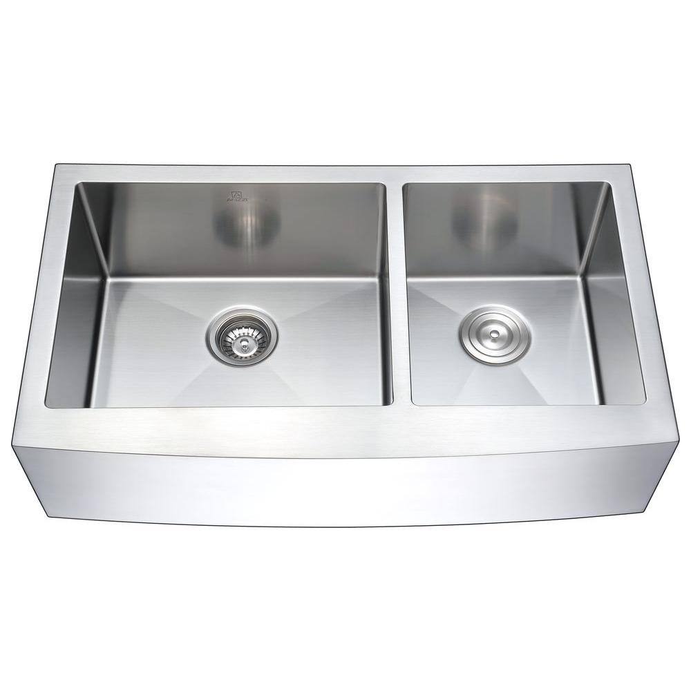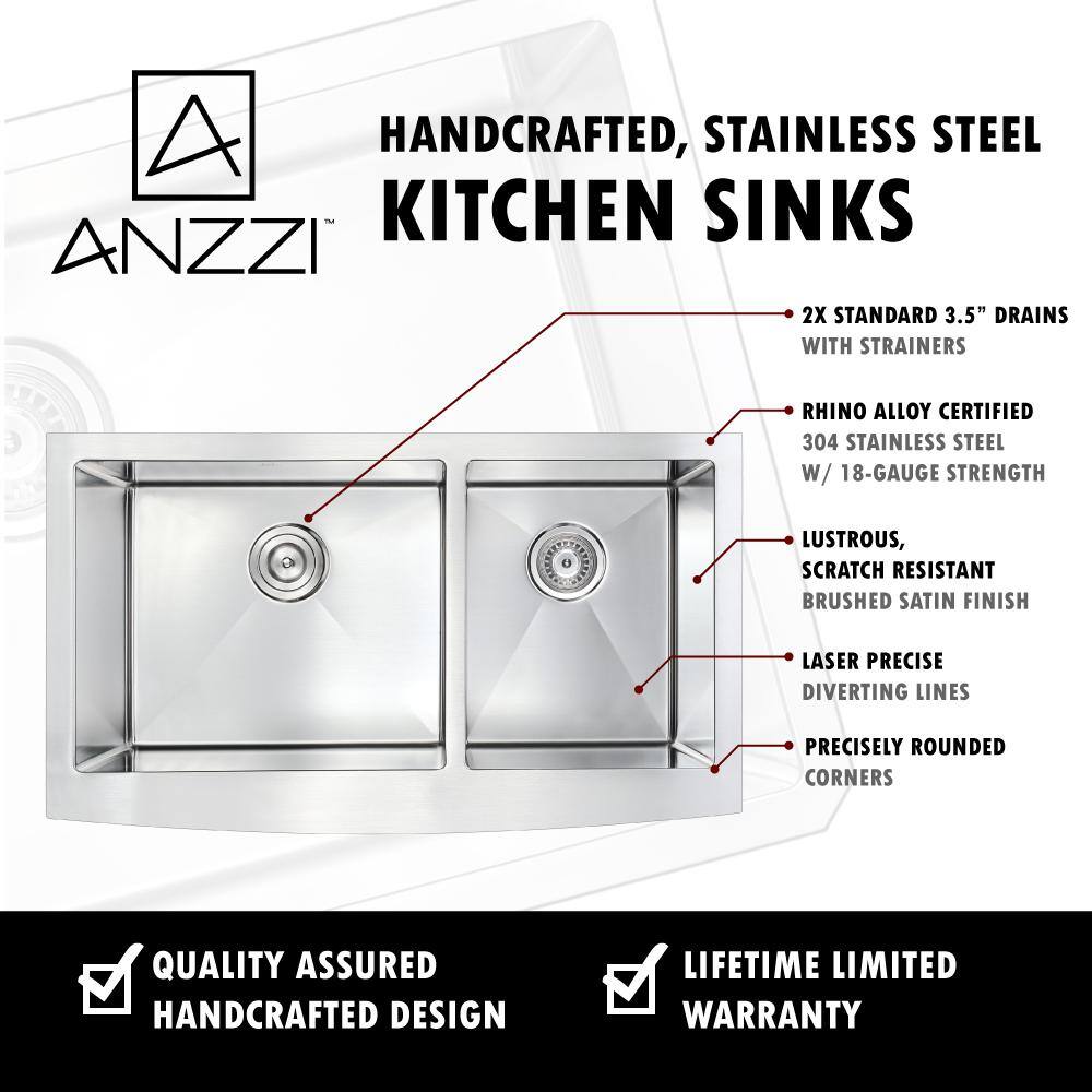 ANZZI ELYSIAN Series Farmhouse Stainless Steel 33 in. 0-Hole Double Bowl Kitchen Sink
