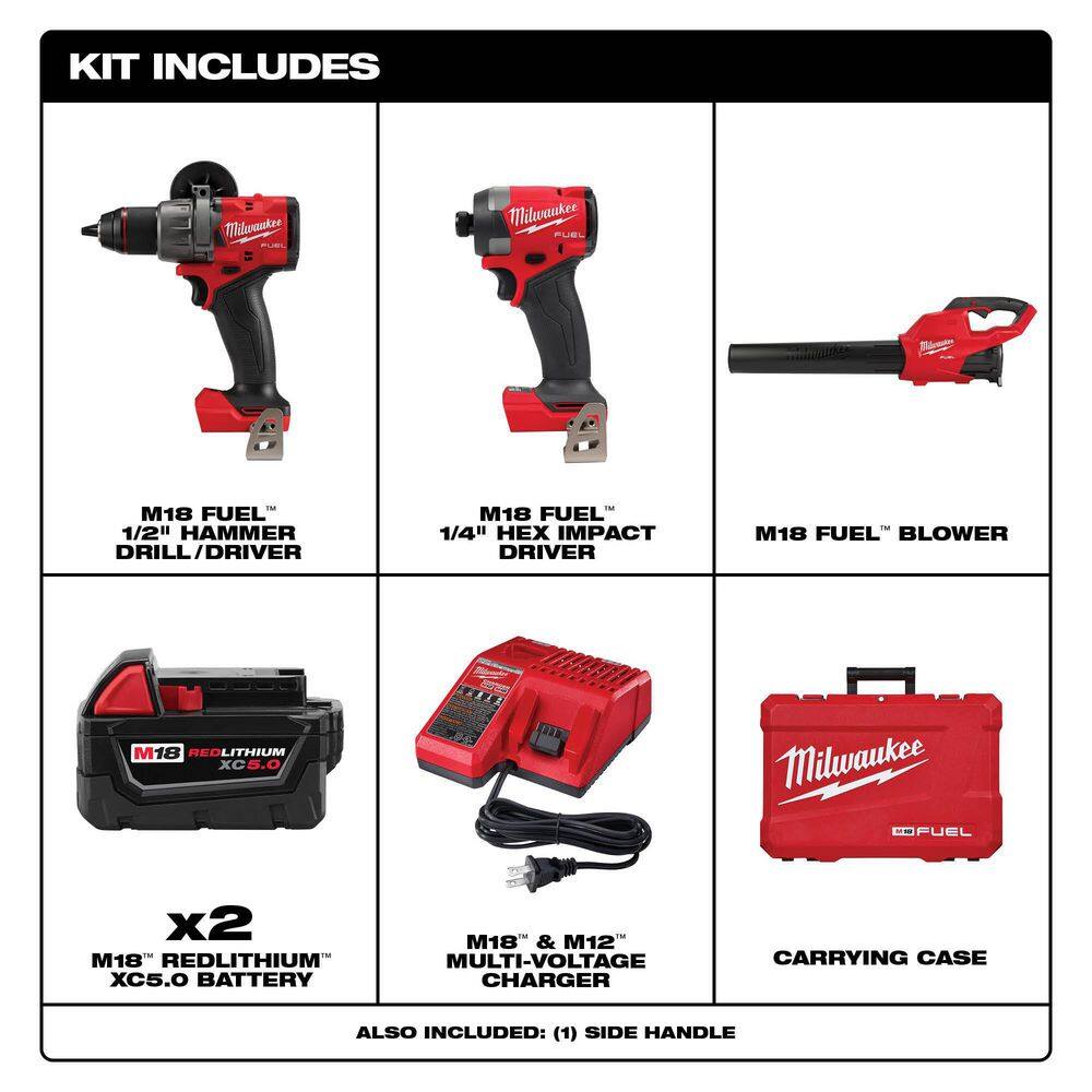 Milwaukee 3697-22-2724-20 M18 FUEL 18V Lithium-Ion Brushless Cordless Hammer Drill and Impact Driver Combo Kit (2-Tool) with M18 Blower