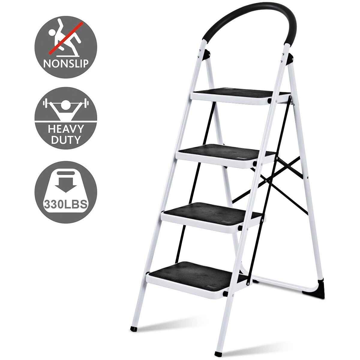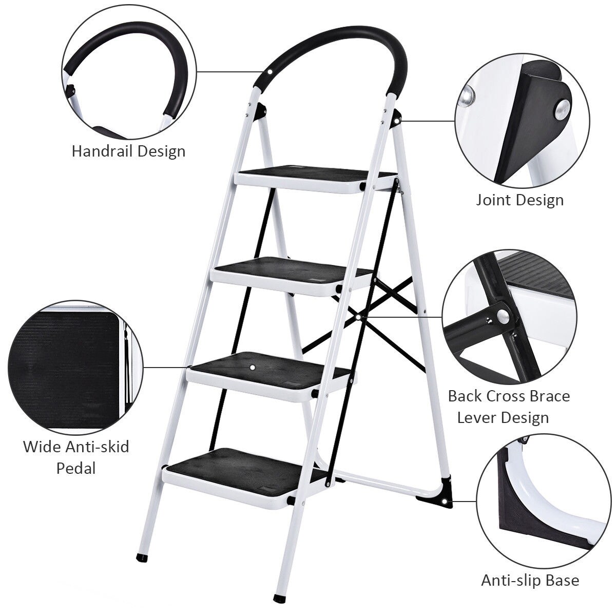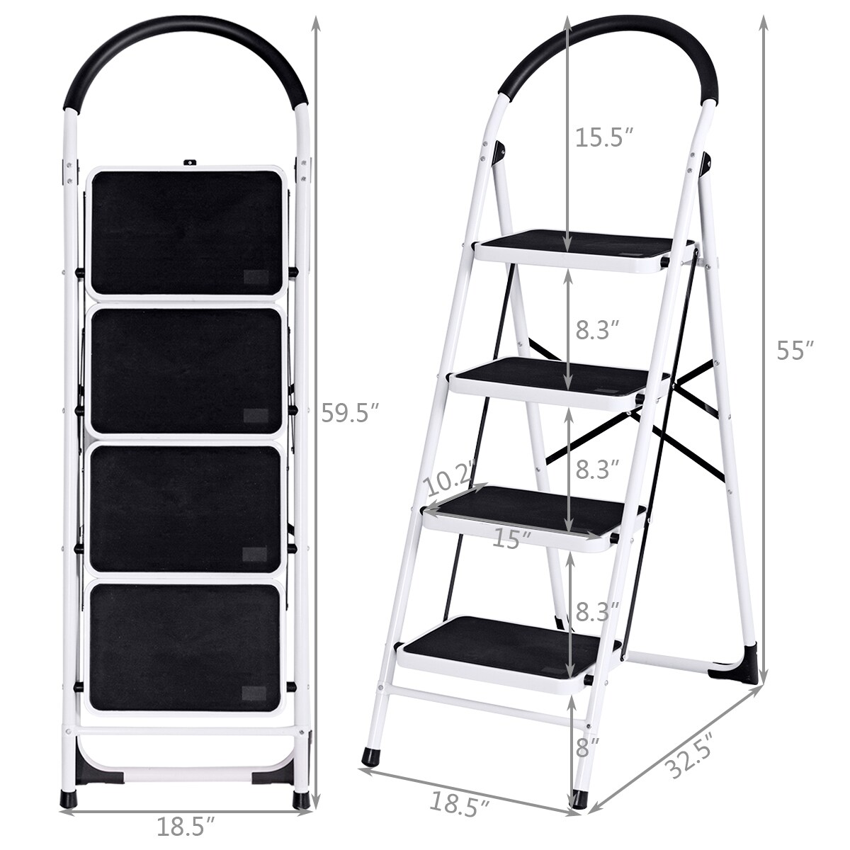 WELLFOR 4-Step 330-lb Capacity Black Steel Foldable Step Stool